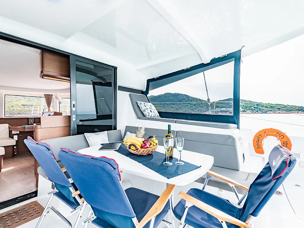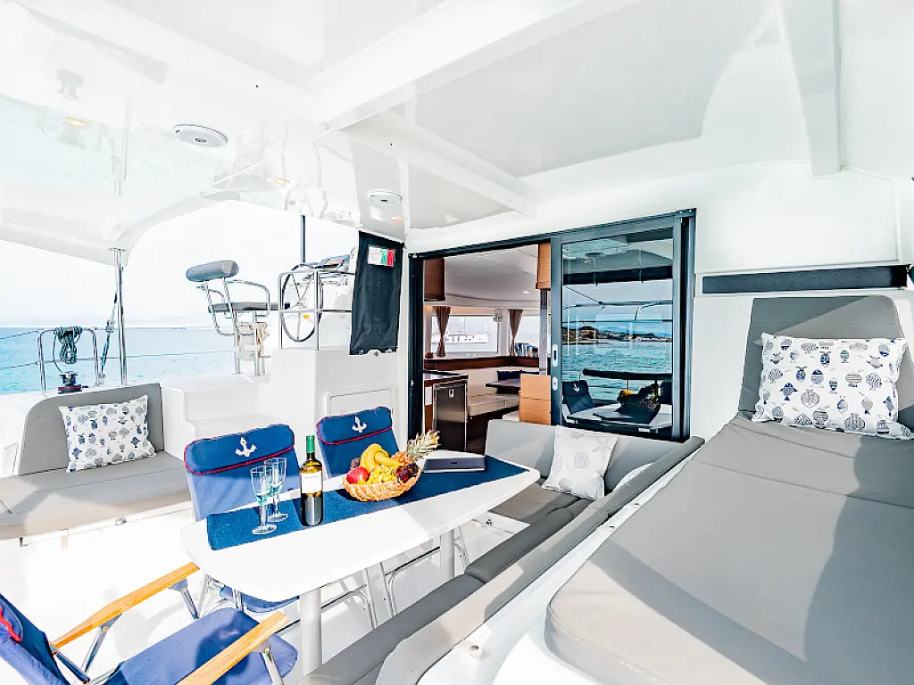 Электрические лебедки , Солнечные панели , Спрейхуд , Опреснитель морской воды , Подушки в кокпите , Динги
