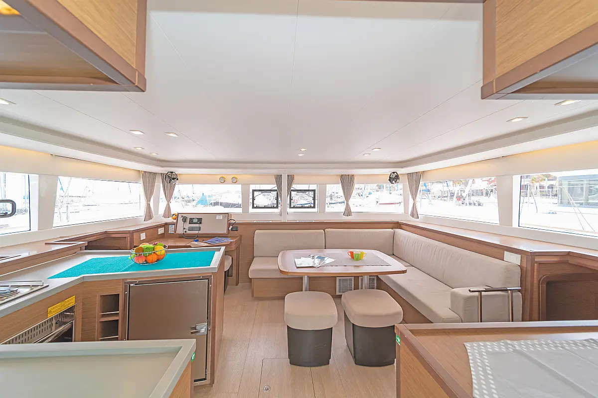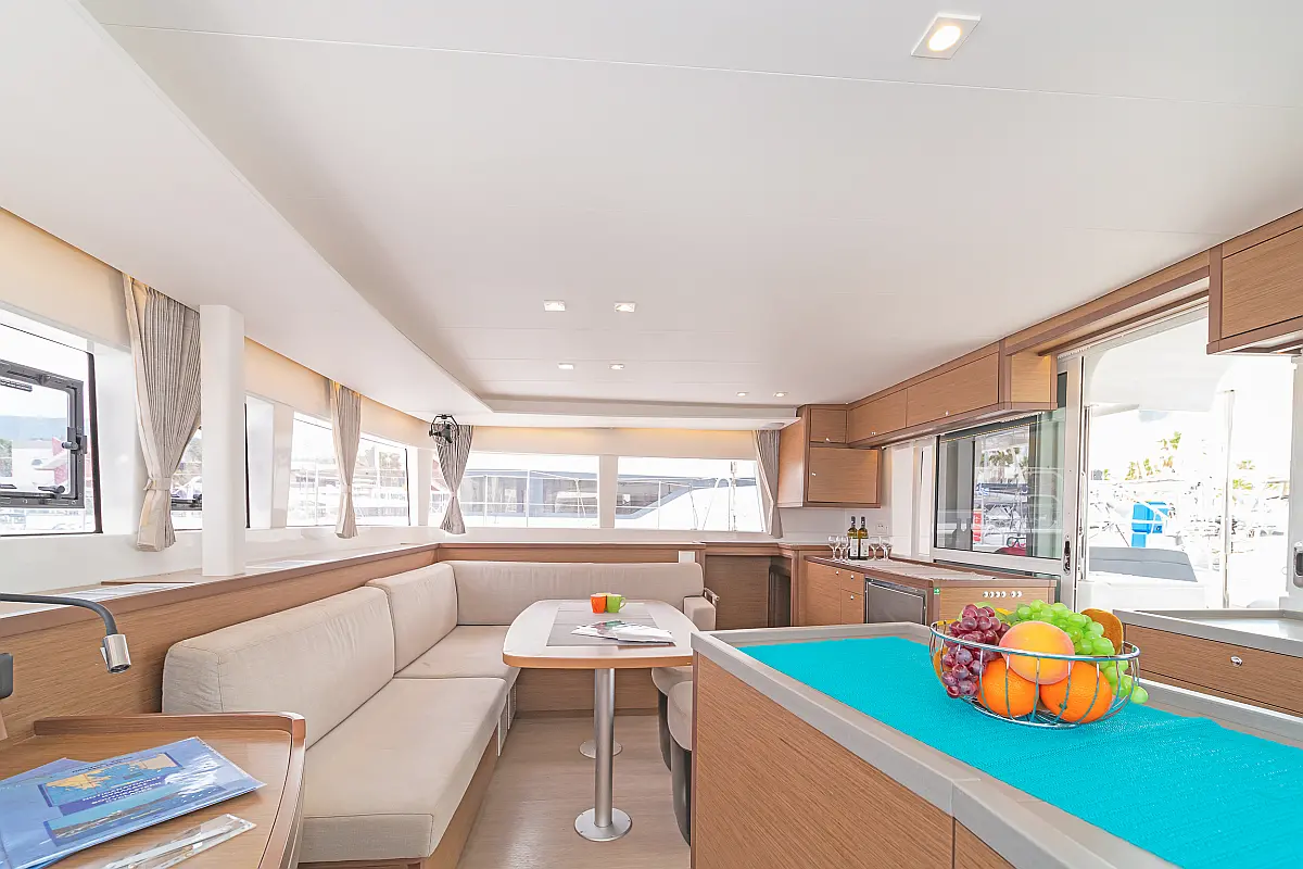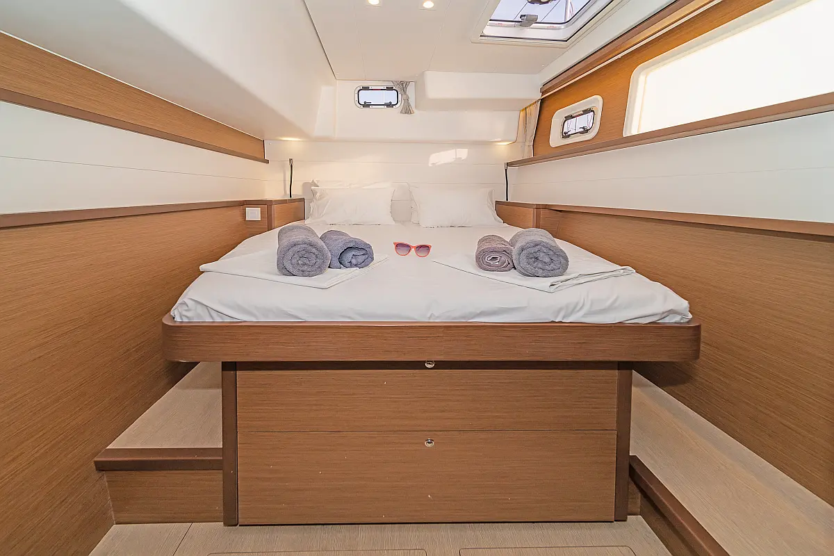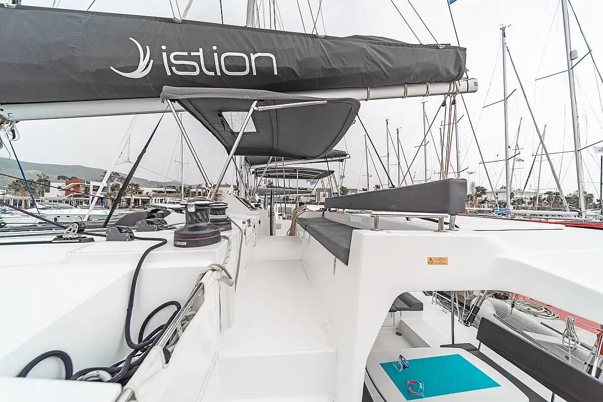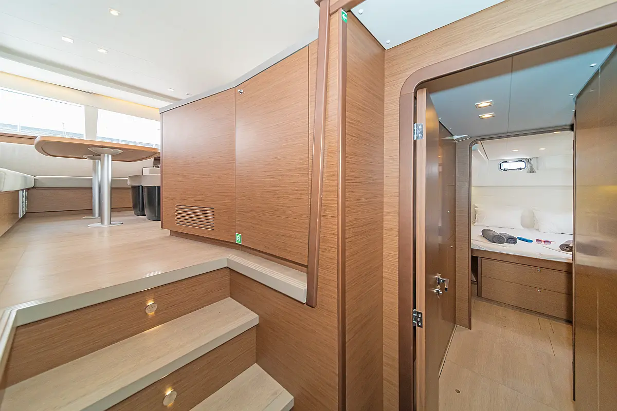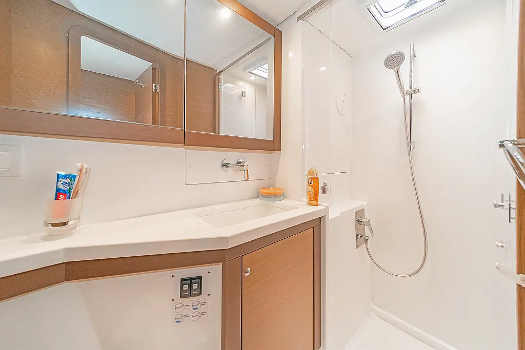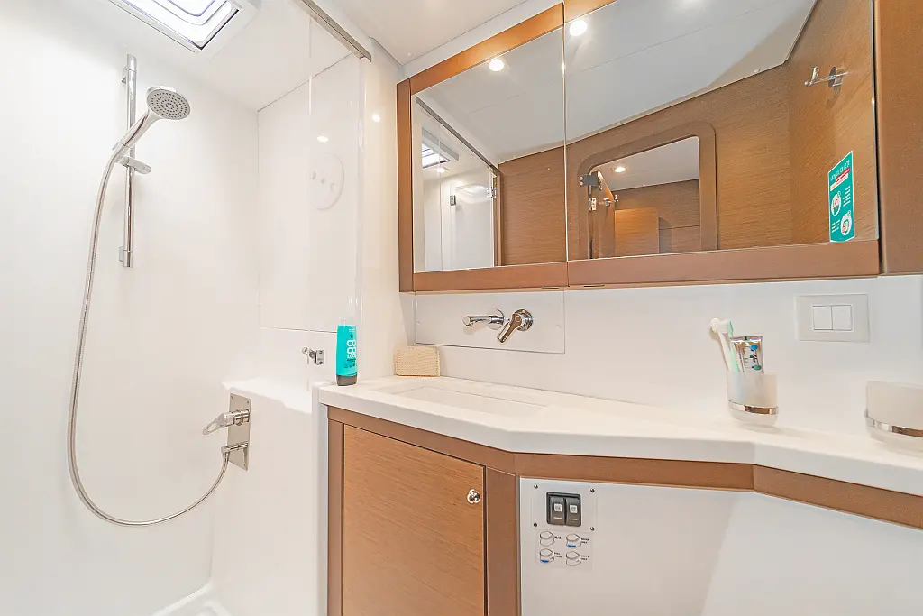 Подушки в кокпите , Спрейхуд , Бимини , Кондиционер , Генератор , Опреснитель морской воды , Электрический туалет , Холодильник , Гидравлический трап , Динамики в кокпите , Солнечные панели