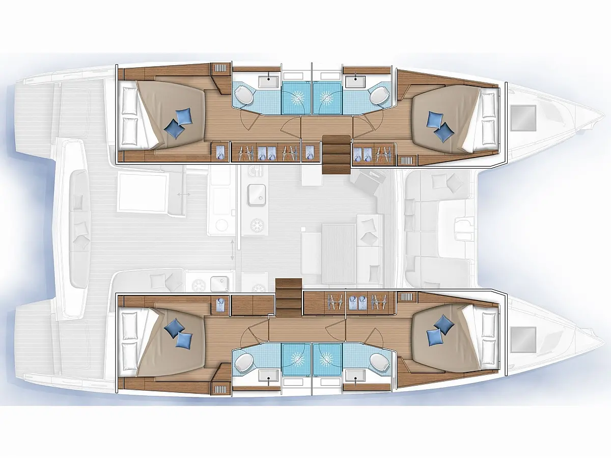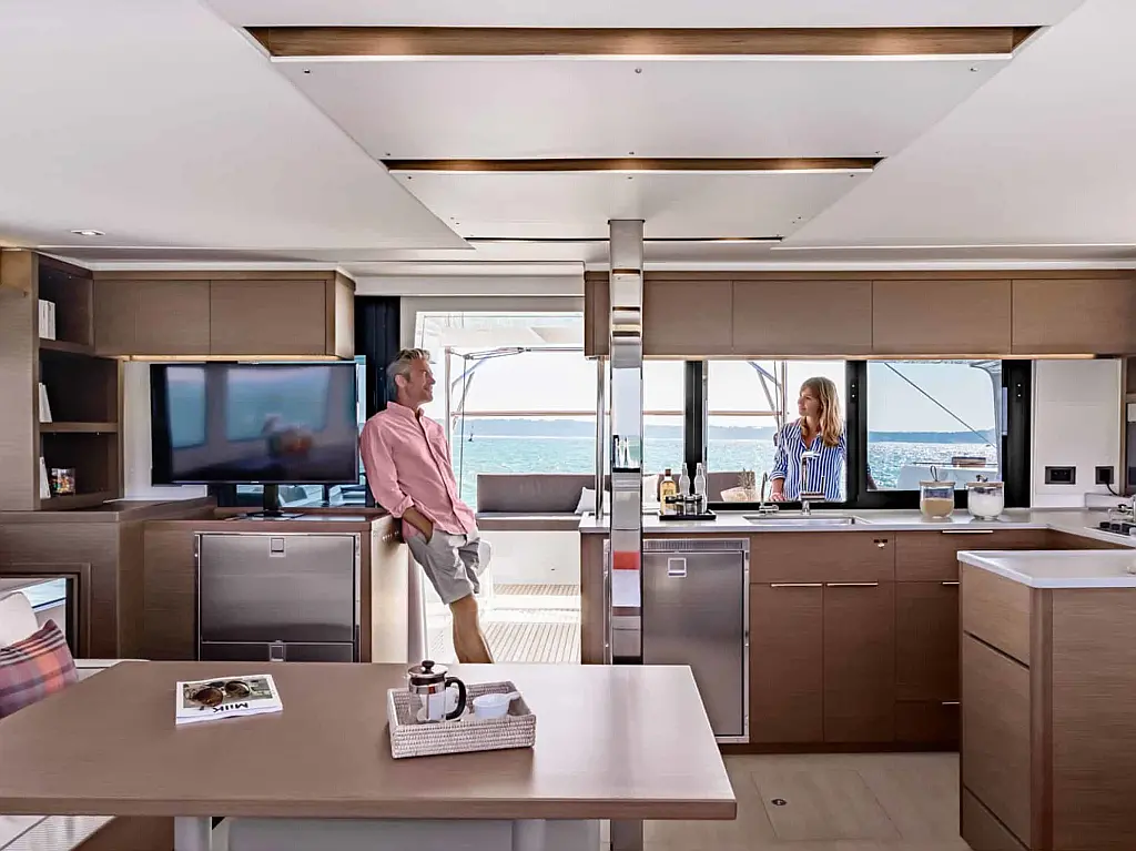 Динги , Кондиционер , Гриль в кокпите , Холодильник , Генератор , Ледогенератор , Кофеварка , Опреснитель морской воды , Wi-Fi и Интернет , Электрический туалет , Инвертор