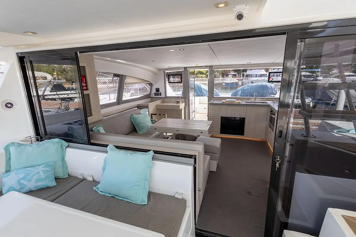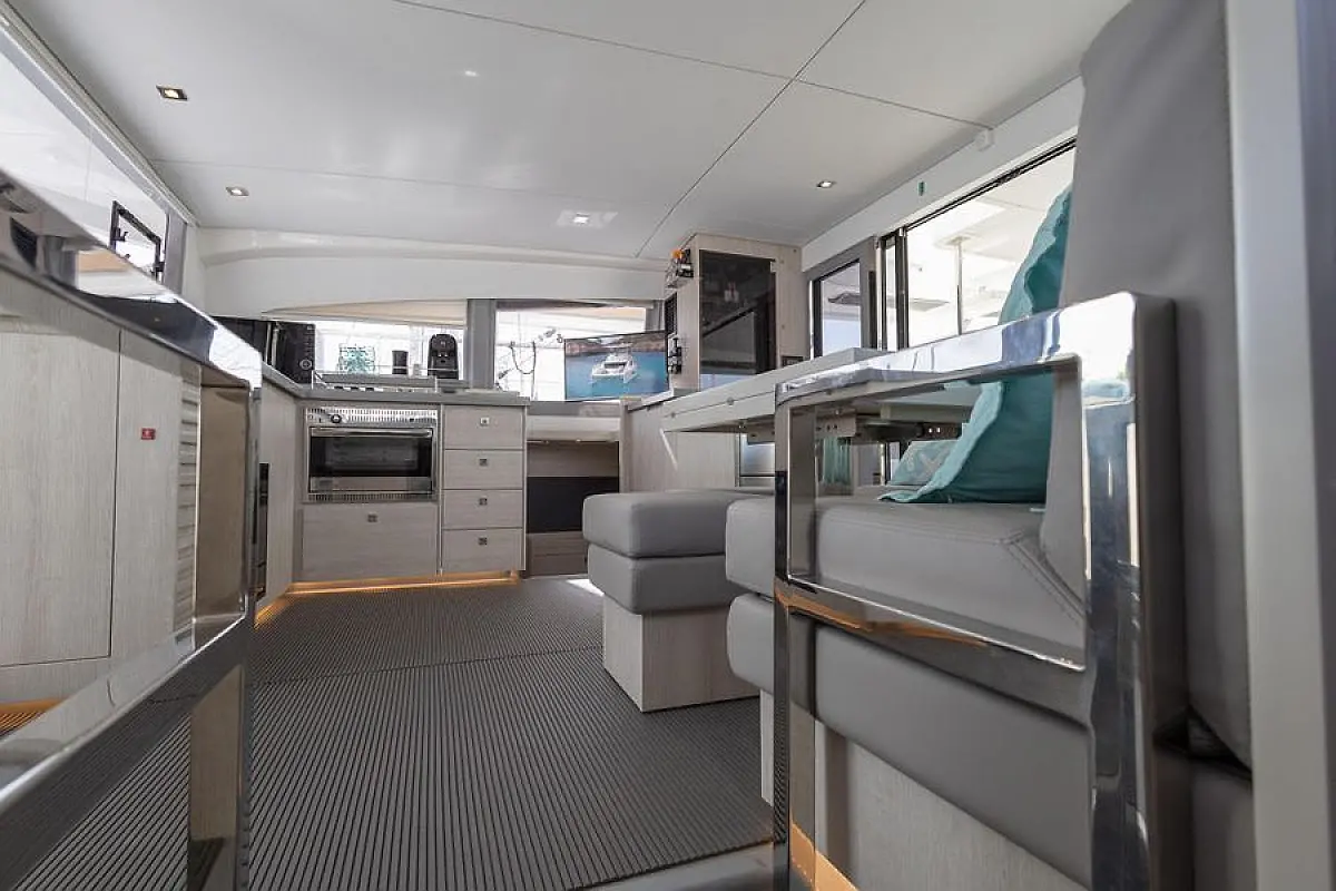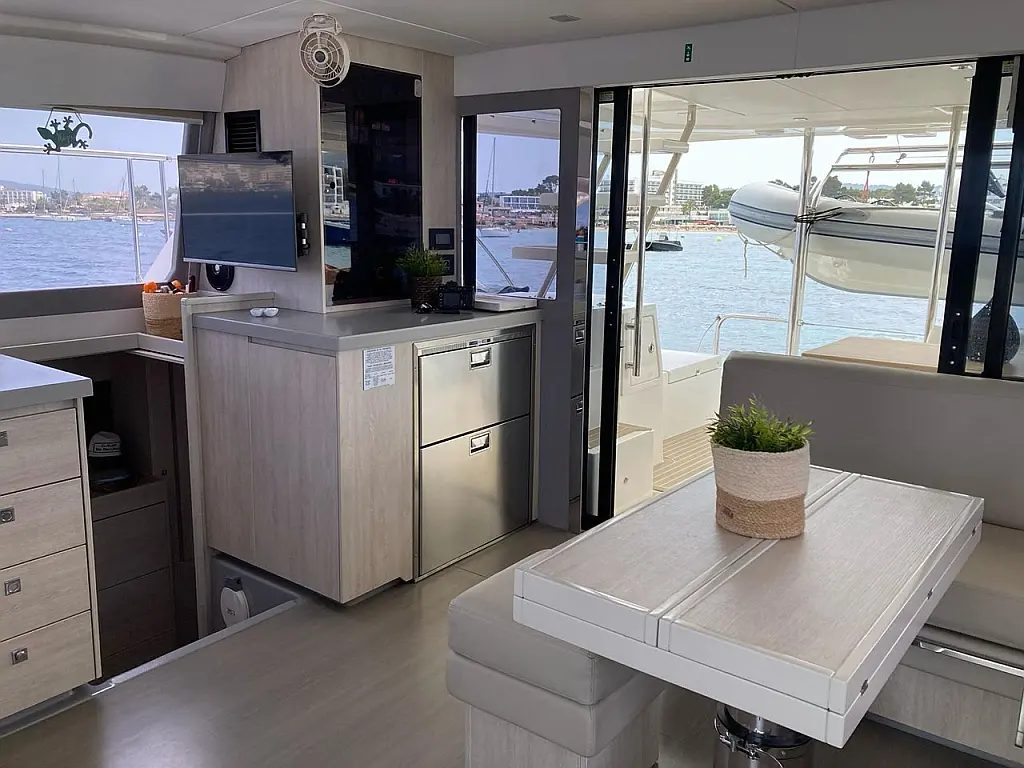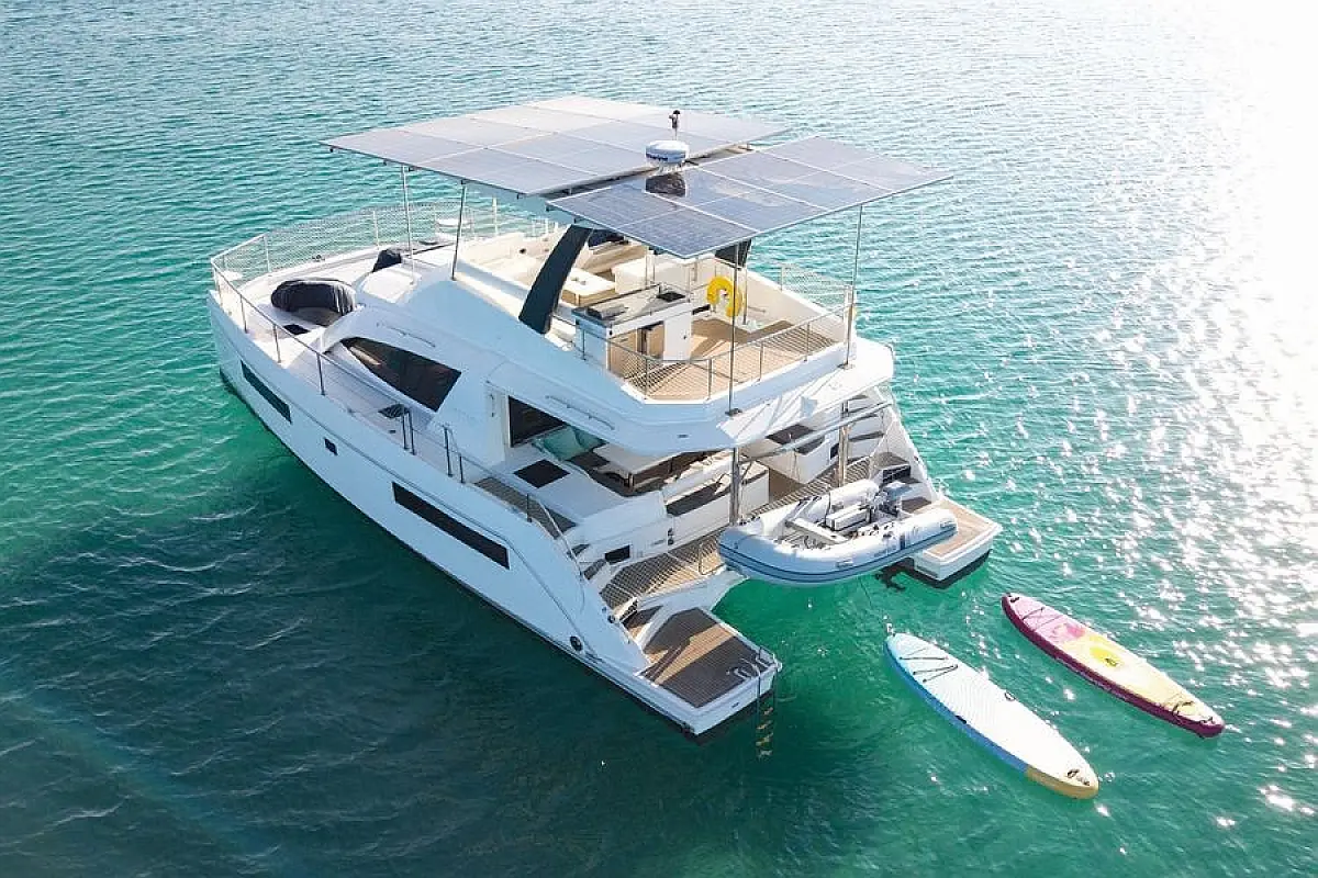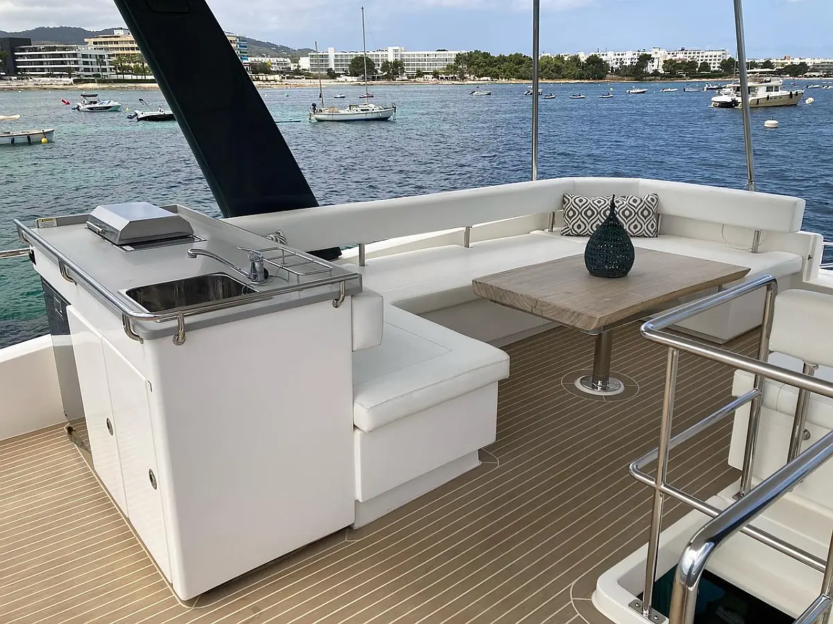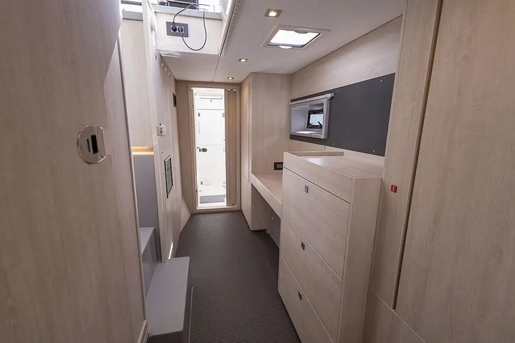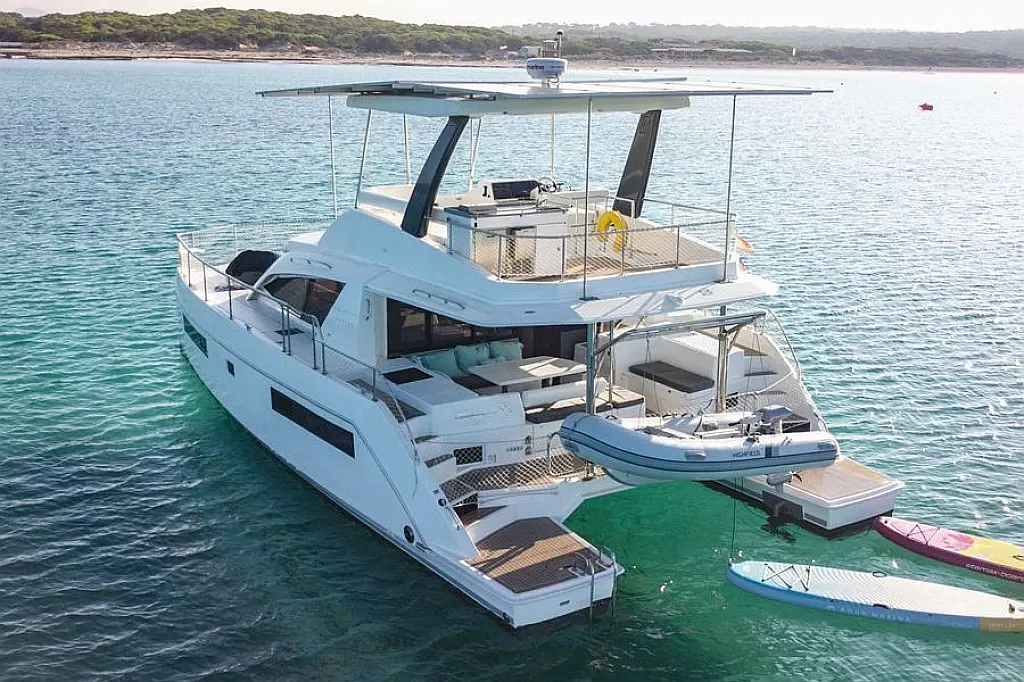 Генератор , Плавательная платформа , Динги , Электрические лебедки , Динамики в кокпите , Опреснитель морской воды , Холодильник