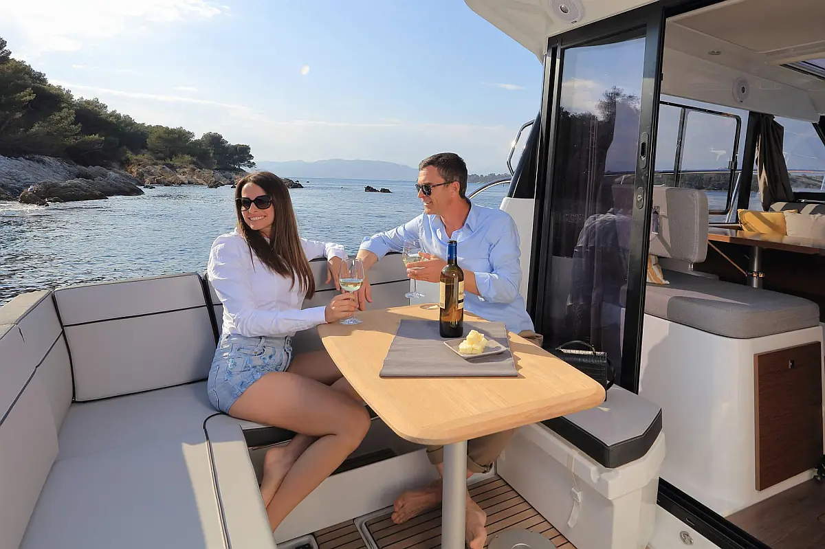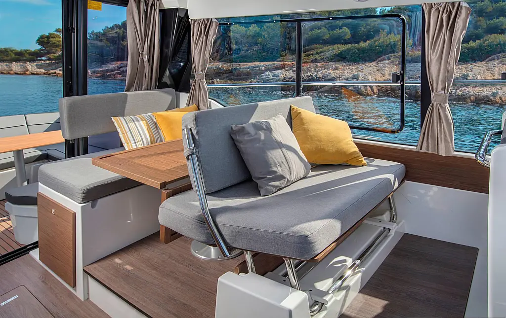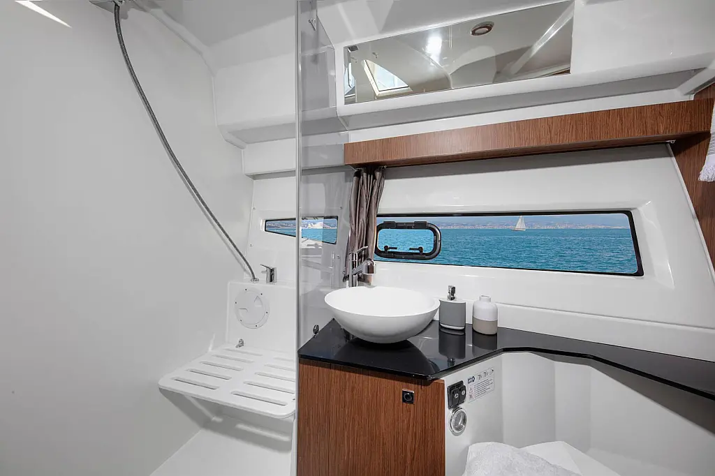 Плавательная платформа , Тиковый кокпит , Холодильник , Кондиционер , Генератор , Динамики в кокпите