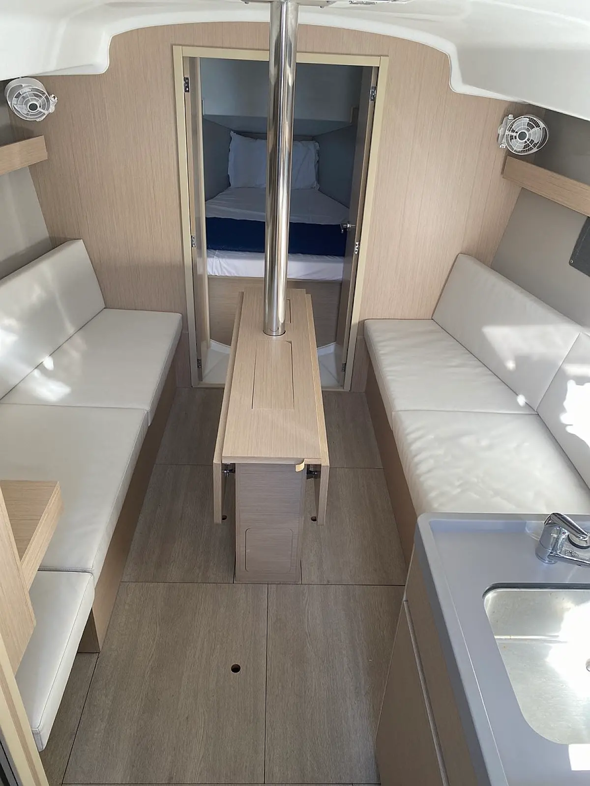 Подушки в кокпите , Динамики в кокпите , Динги , Тиковый кокпит , Сточный бак , Электрические лебедки , Бимини , Электрический туалет