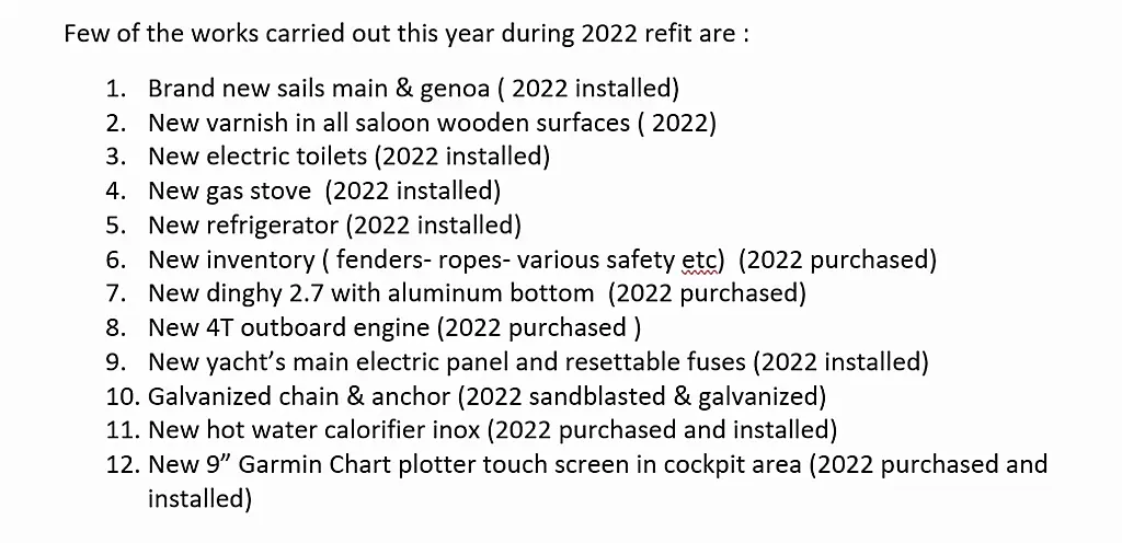 Динги , Электрический туалет , Солнечные панели , Инвертор , Тиковый кокпит , Тиковая палуба