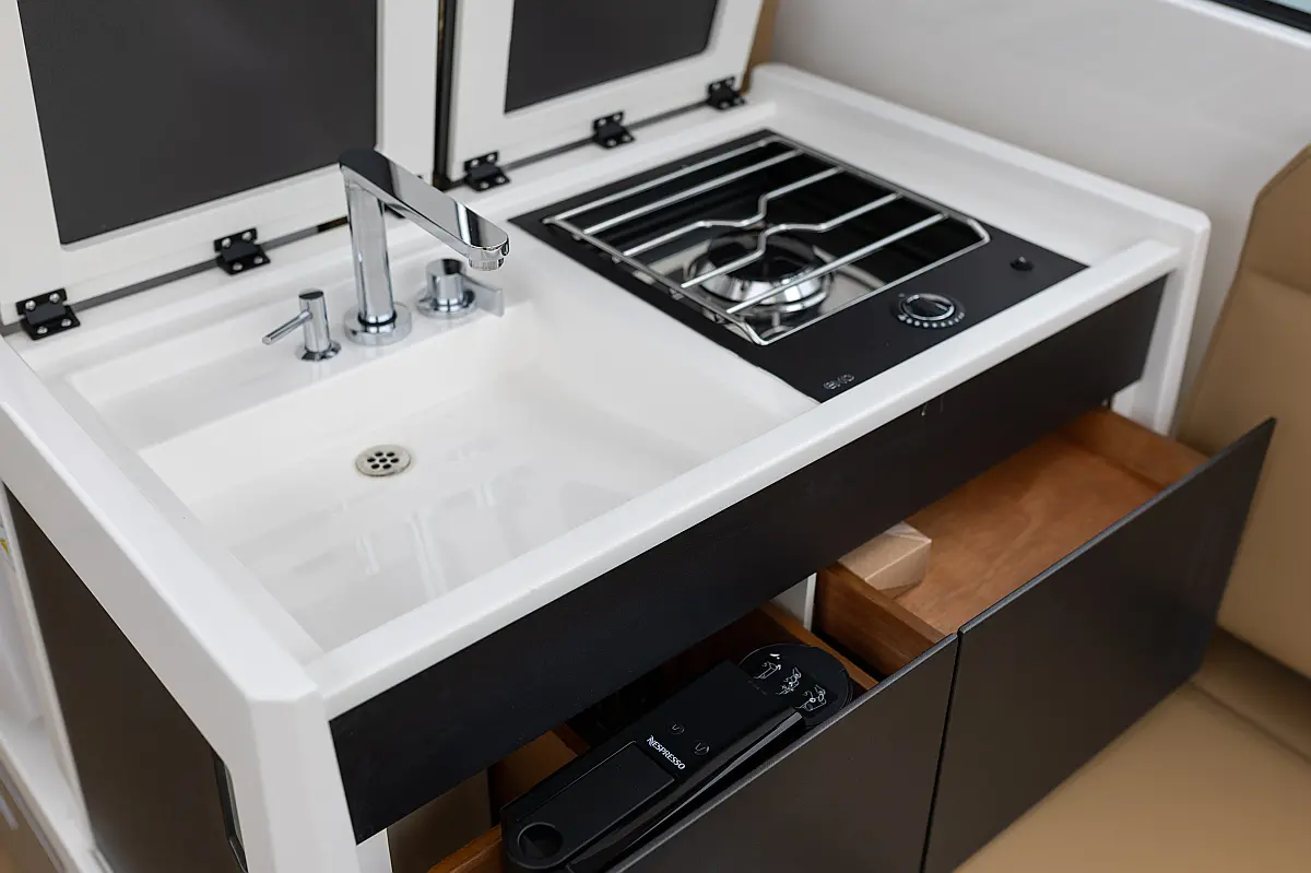 Кондиционер , Бимини , Электрический туалет , Wi-Fi и Интернет , Плавательная платформа , Тиковый кокпит , Холодильник