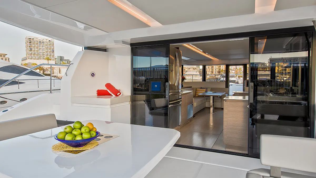 Бимини , Гриль в кокпите , Динамики в кокпите , Солнечные панели , Холодильник