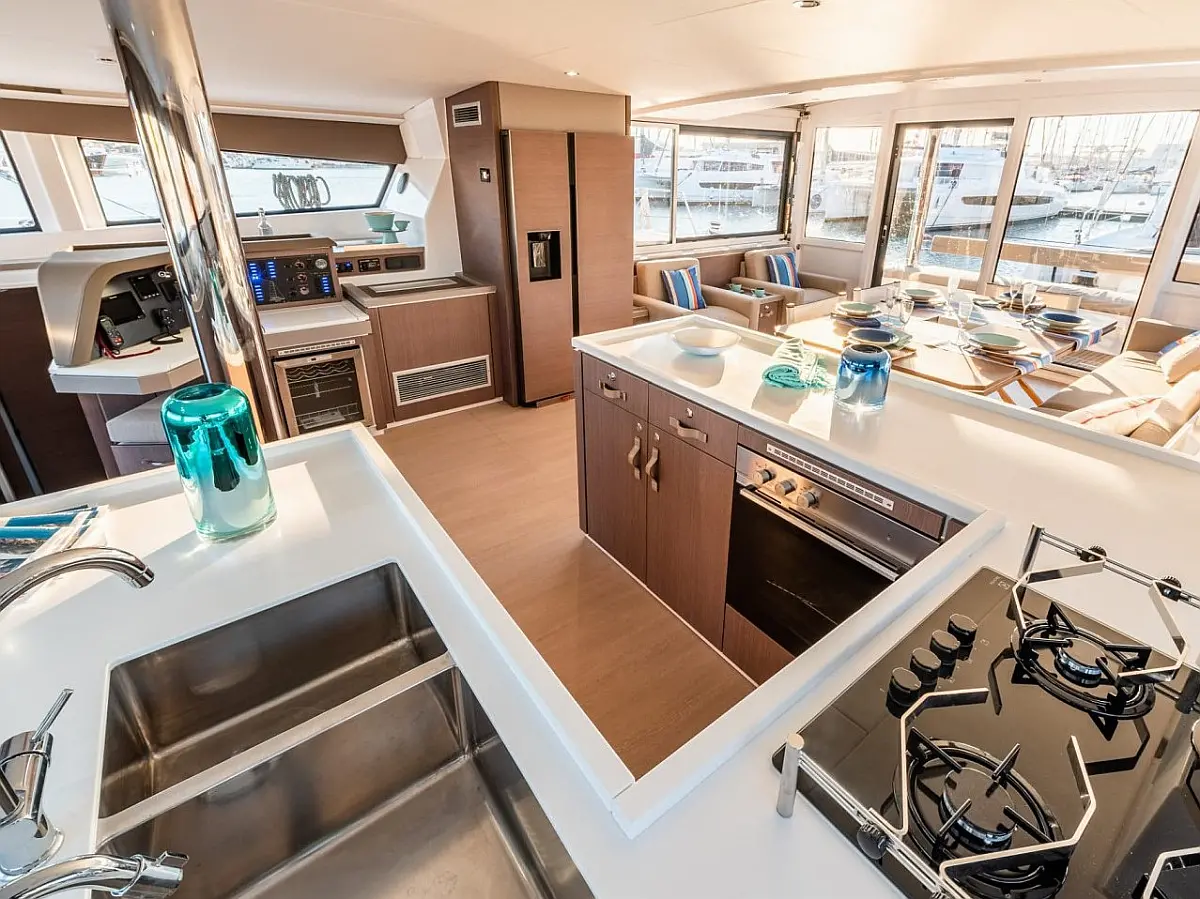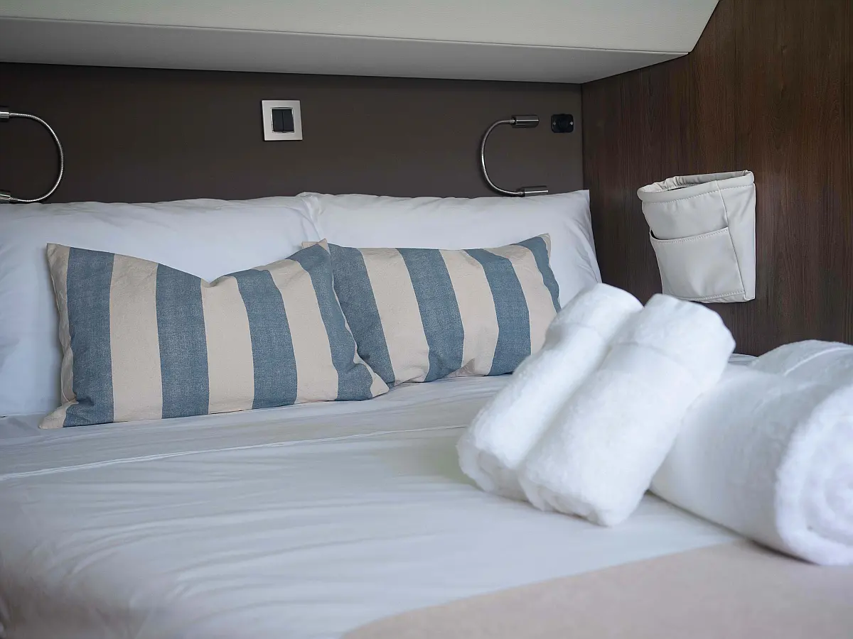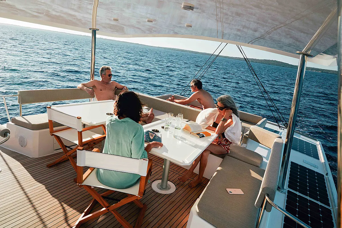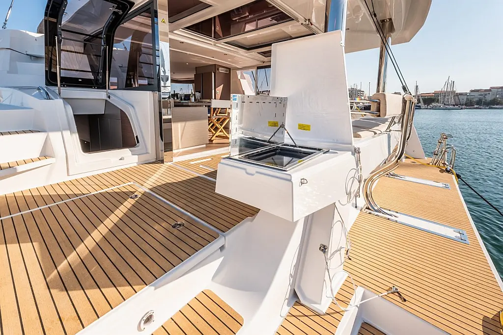 Inverter , Refrigerator , Cockpit cushions , Electric toilet , Water maker , Ice maker , Solar Panels , Cockpit speakers , Air condition , Electric winches , Teak deck , Dinghy