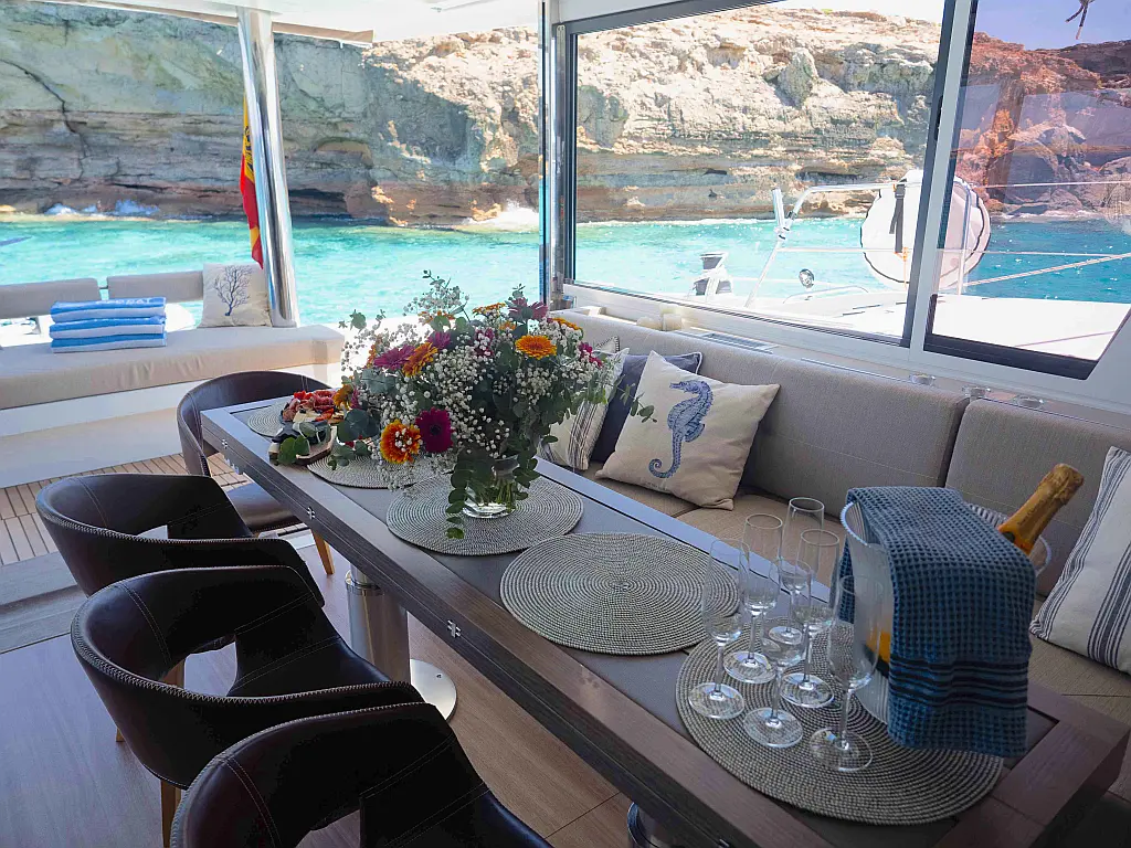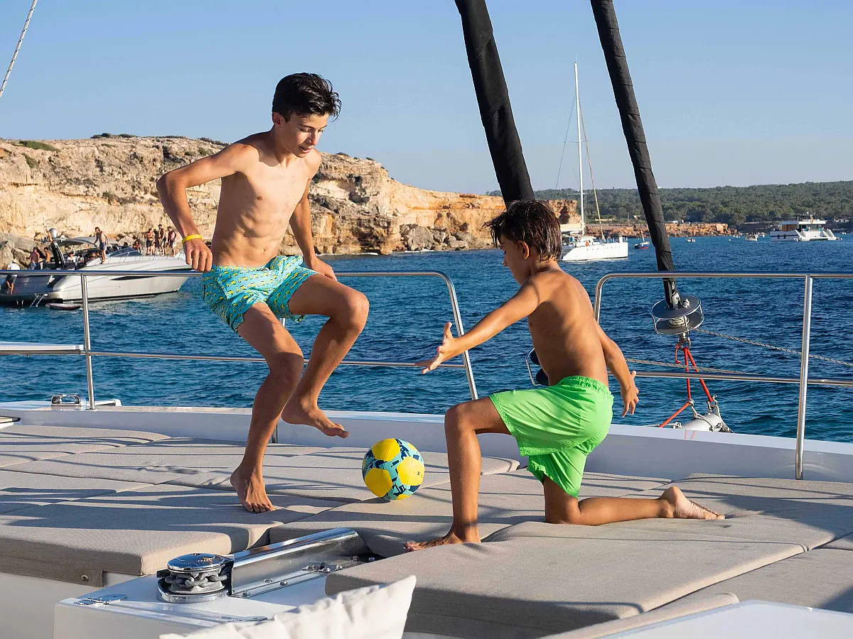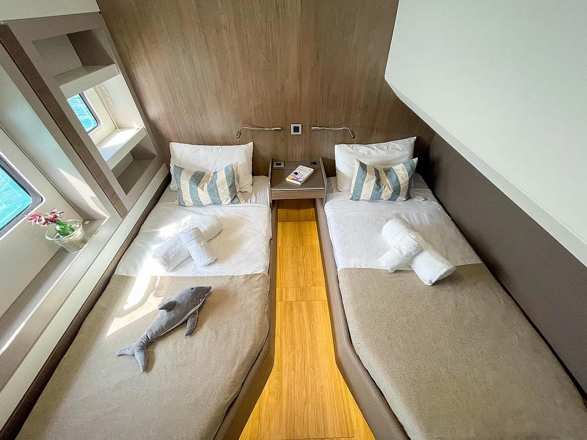 Inverter , Refrigerator , Cockpit cushions , Electric toilet , Water maker , Ice maker , Solar Panels , Cockpit speakers , Air condition , Electric winches , Teak deck , Dinghy