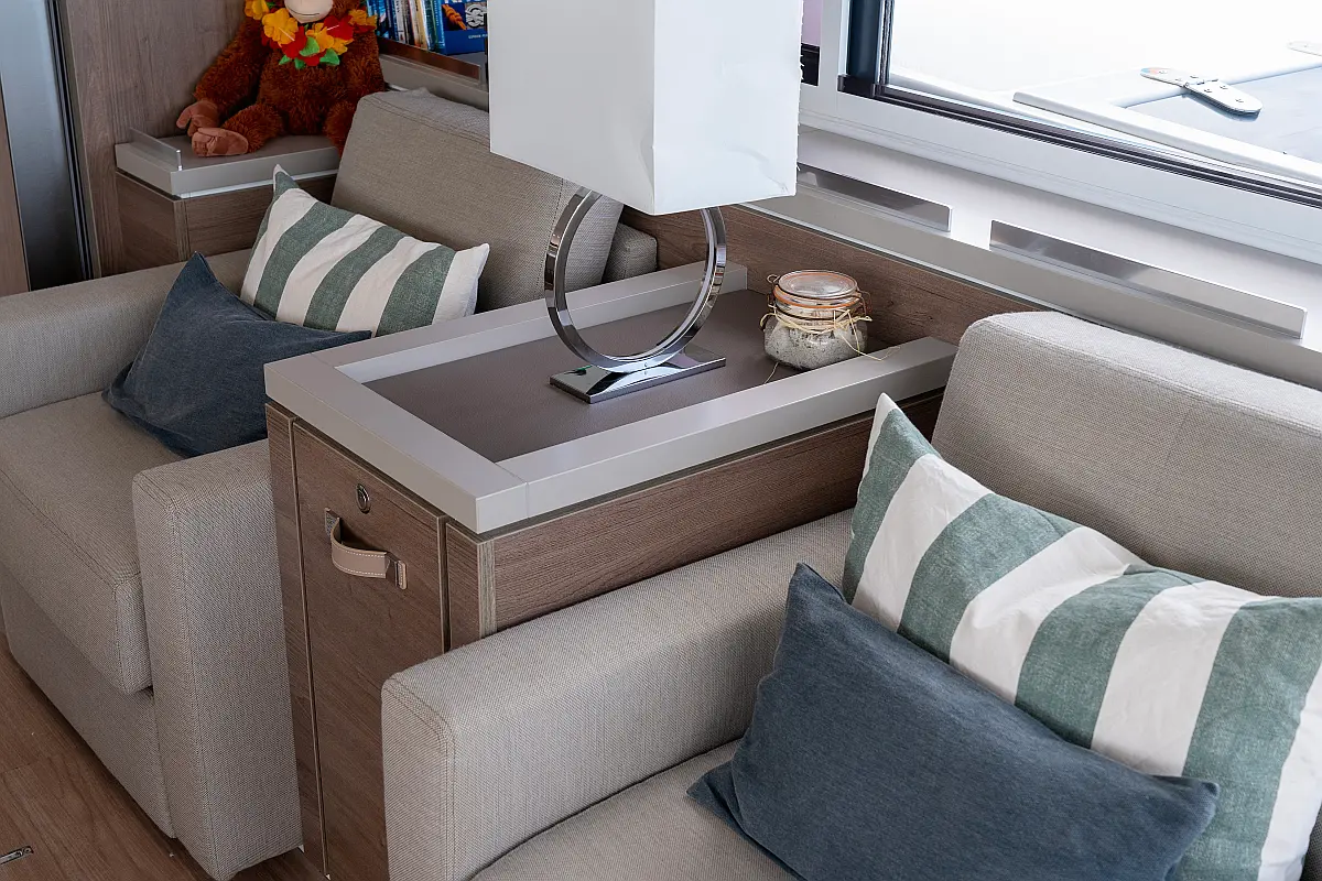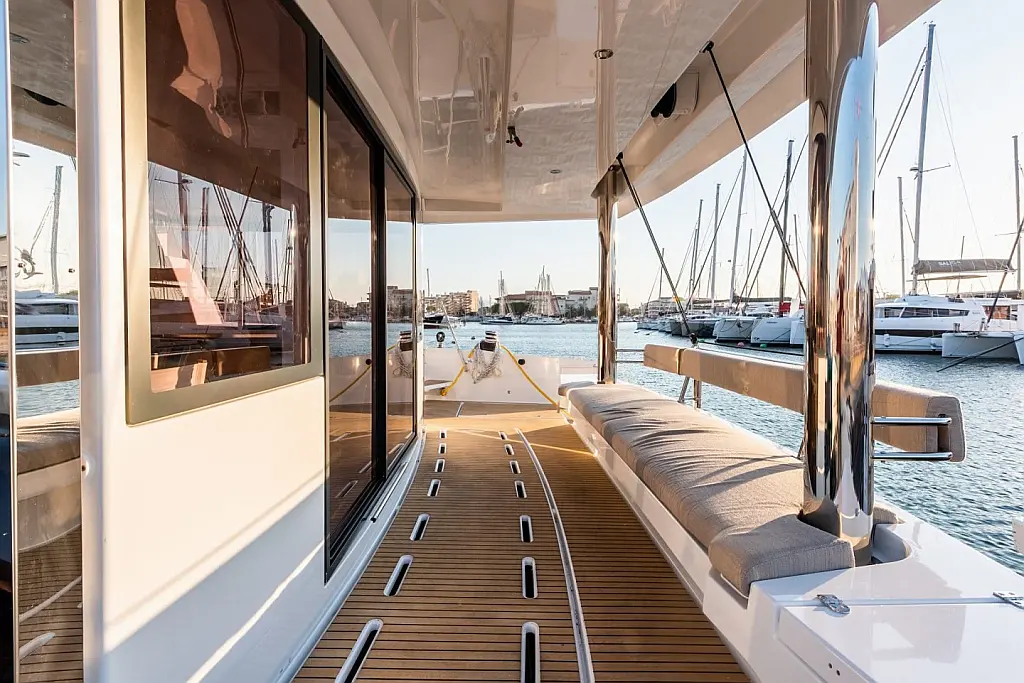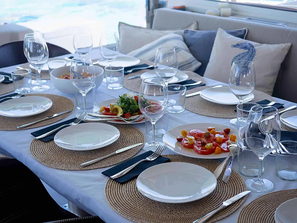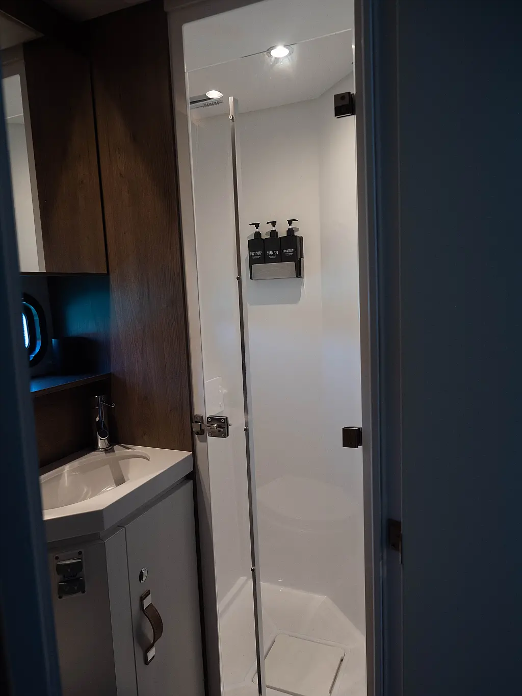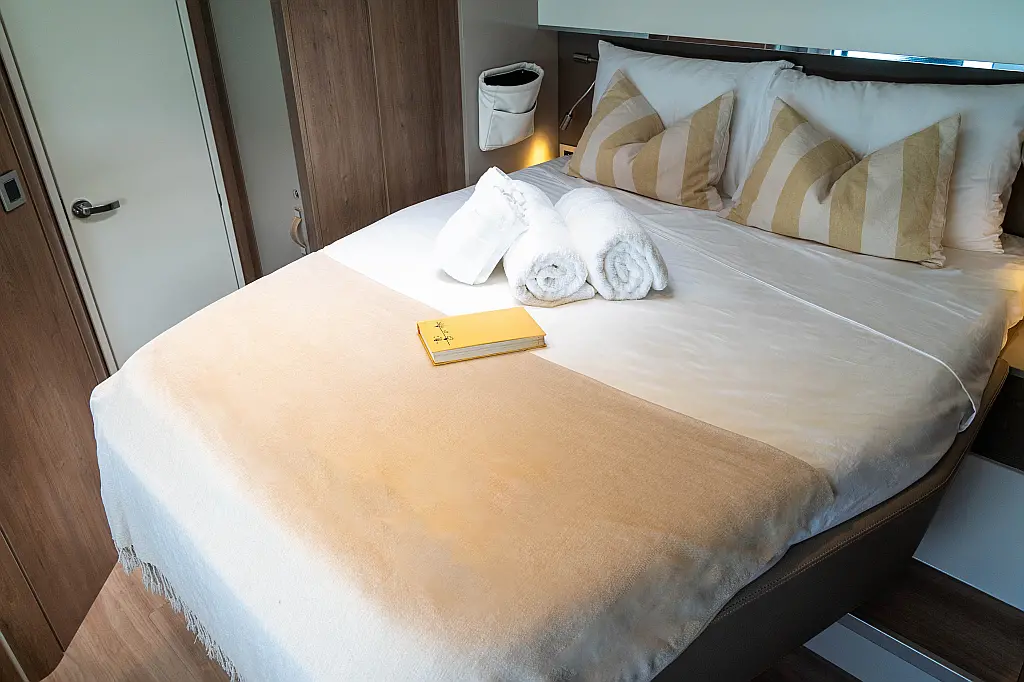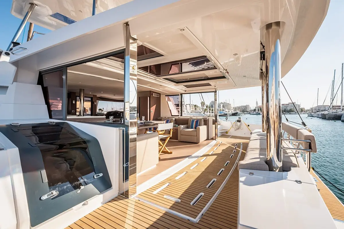 Inverter , Refrigerator , Cockpit cushions , Electric toilet , Water maker , Ice maker , Solar Panels , Cockpit speakers , Air condition , Electric winches , Teak deck , Dinghy