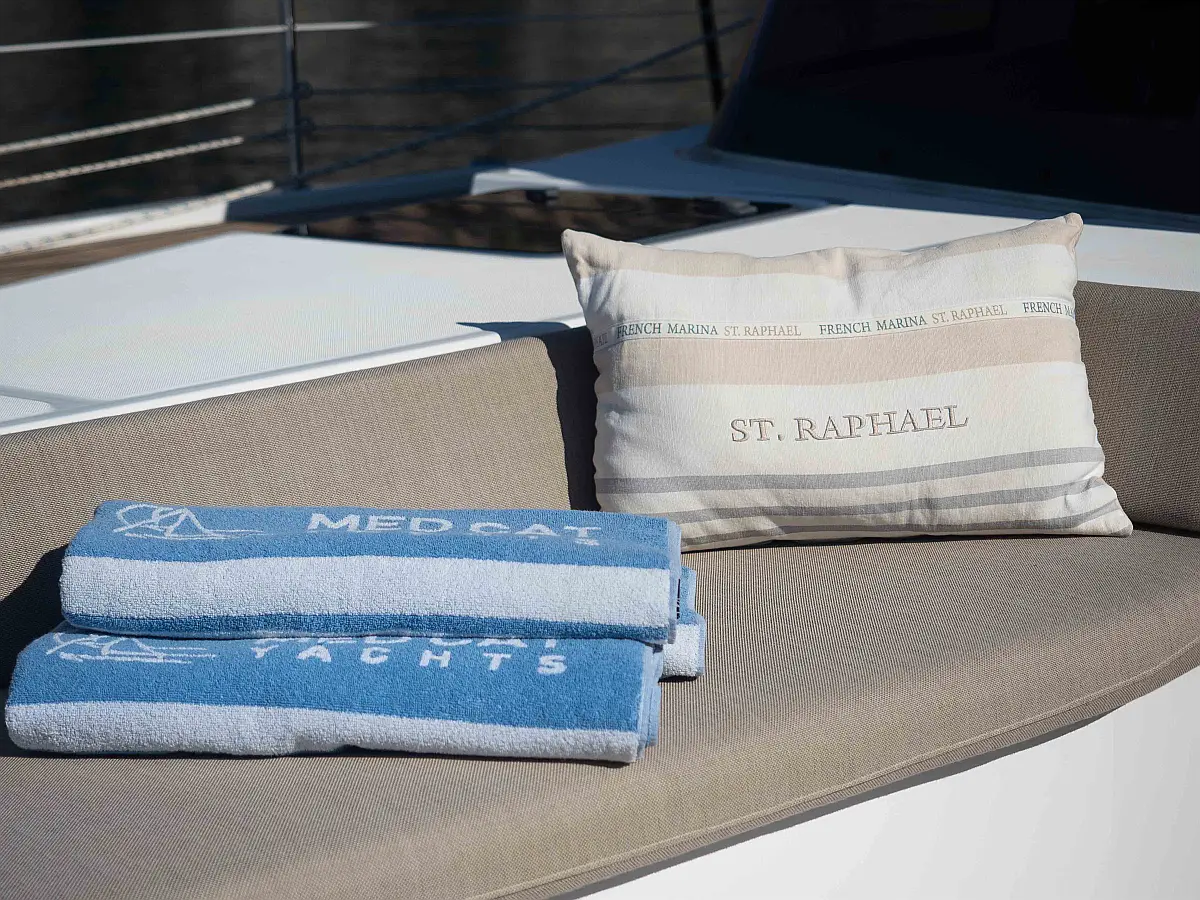 Refrigerator , Cockpit cushions , Electric toilet , Ice maker , Cockpit speakers , Water maker , Air condition , Dinghy