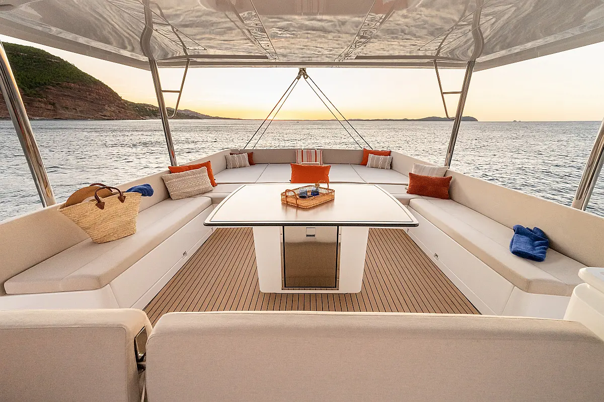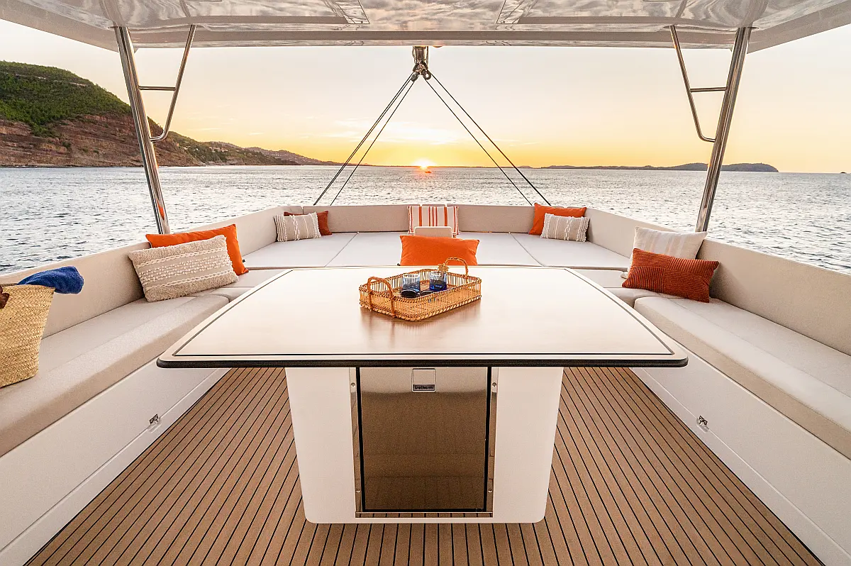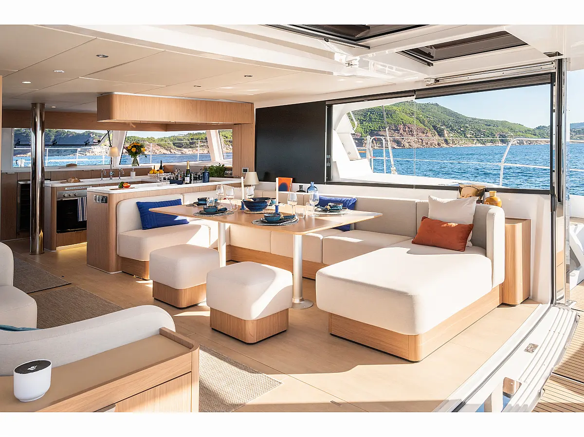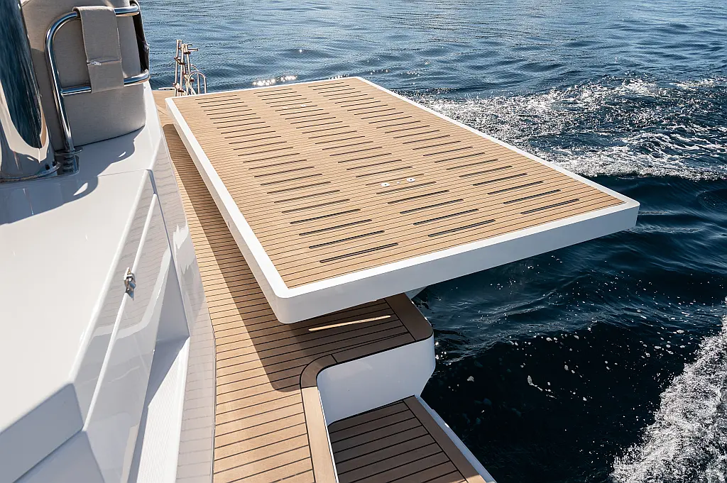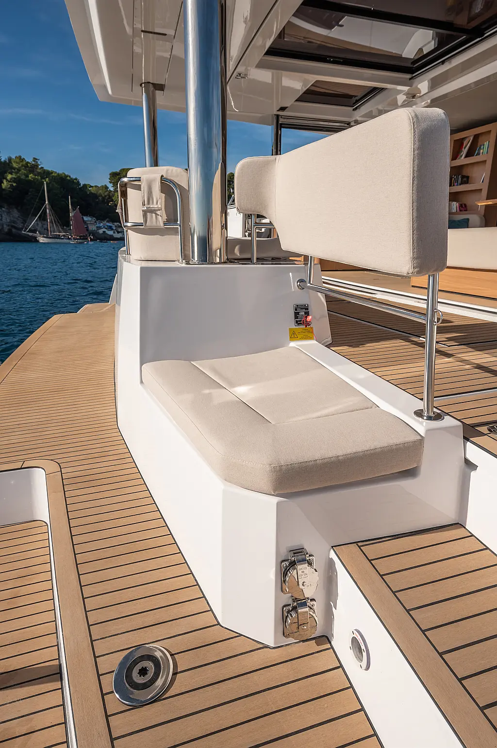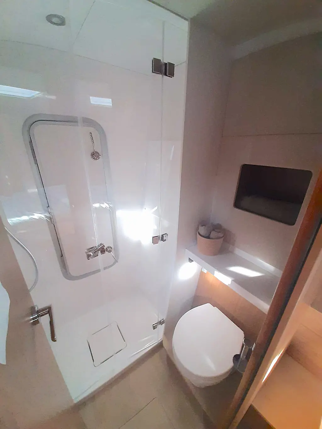 Inverter , Refrigerator , Cockpit cushions , Electric toilet , Water maker , Ice maker , Solar Panels , Cockpit speakers , Air condition , Electric winches , Teak deck