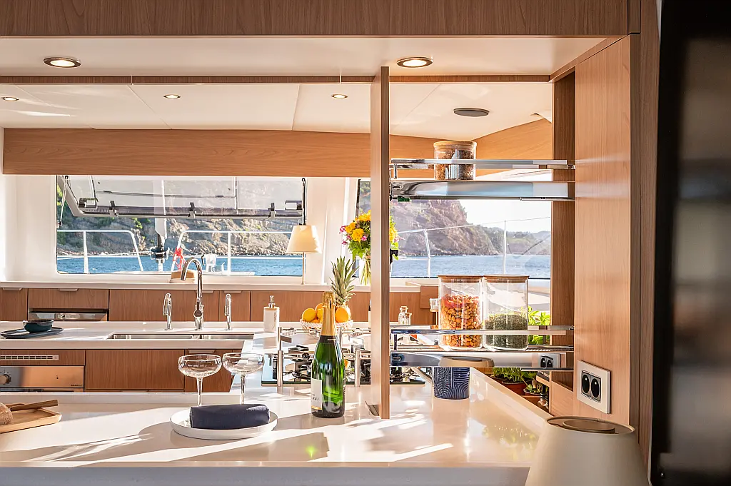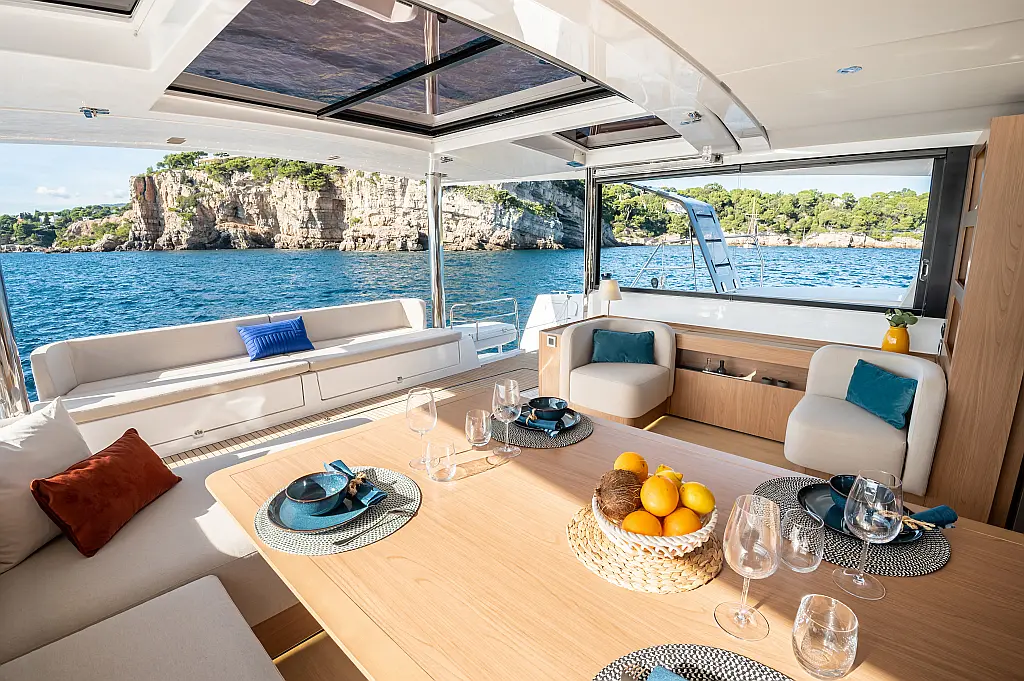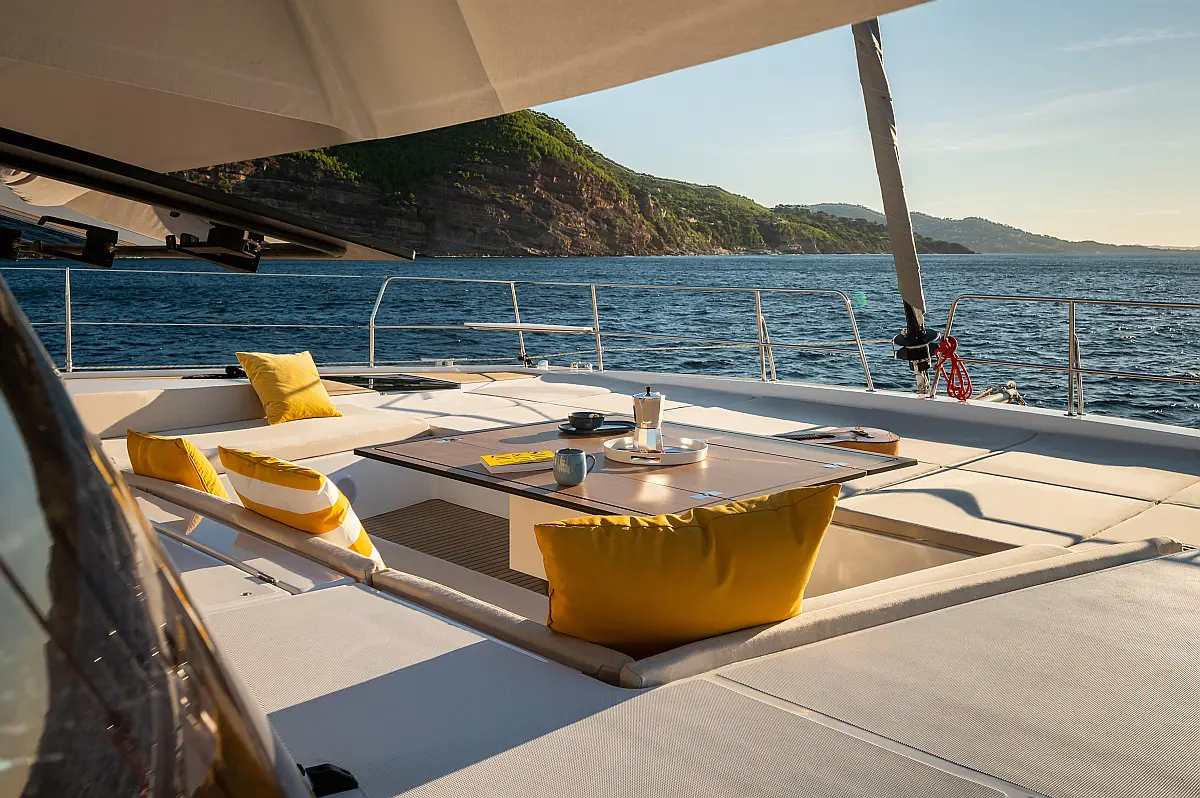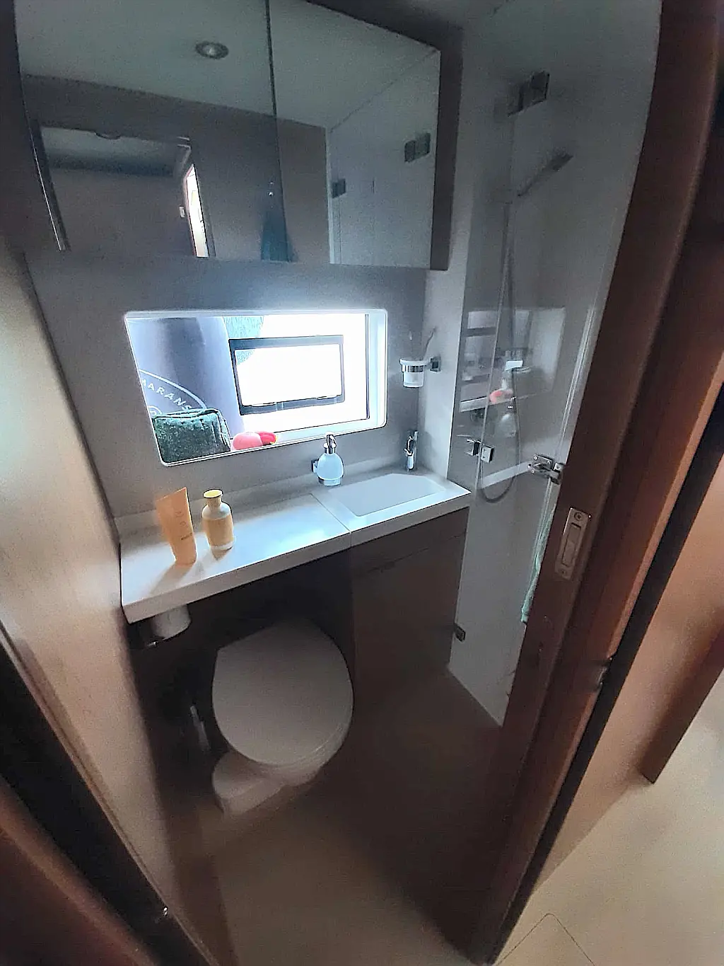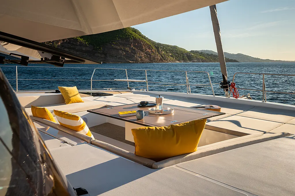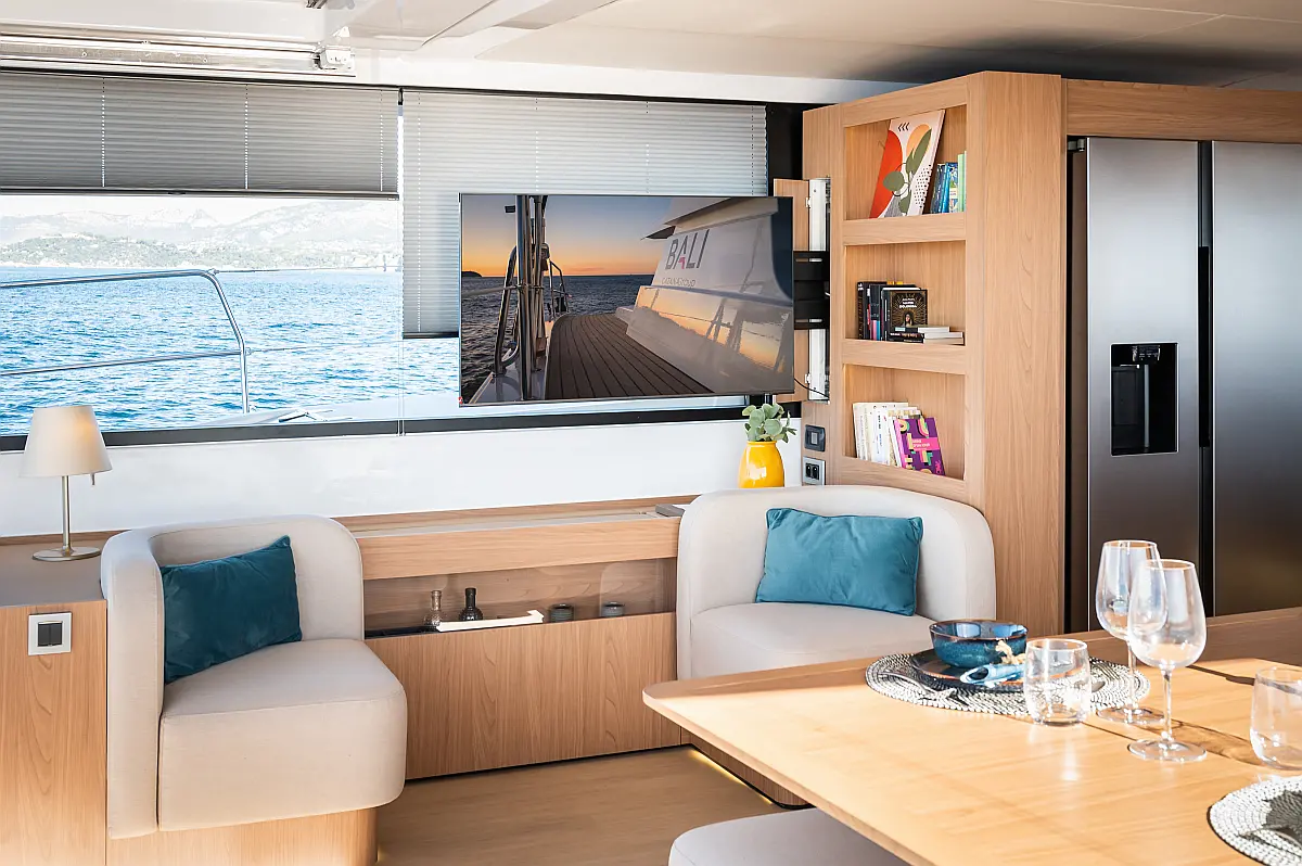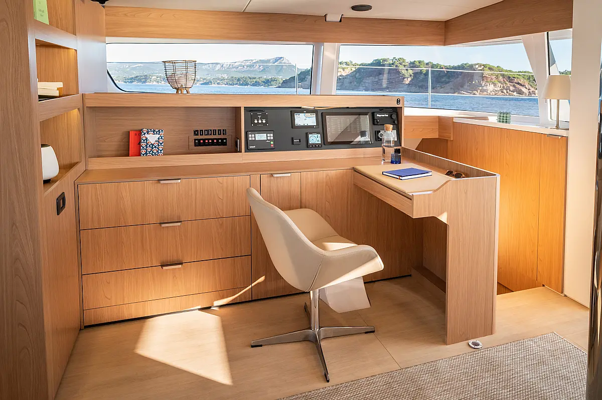 Inverter , Refrigerator , Cockpit cushions , Electric toilet , Water maker , Ice maker , Solar Panels , Cockpit speakers , Air condition , Electric winches , Teak deck