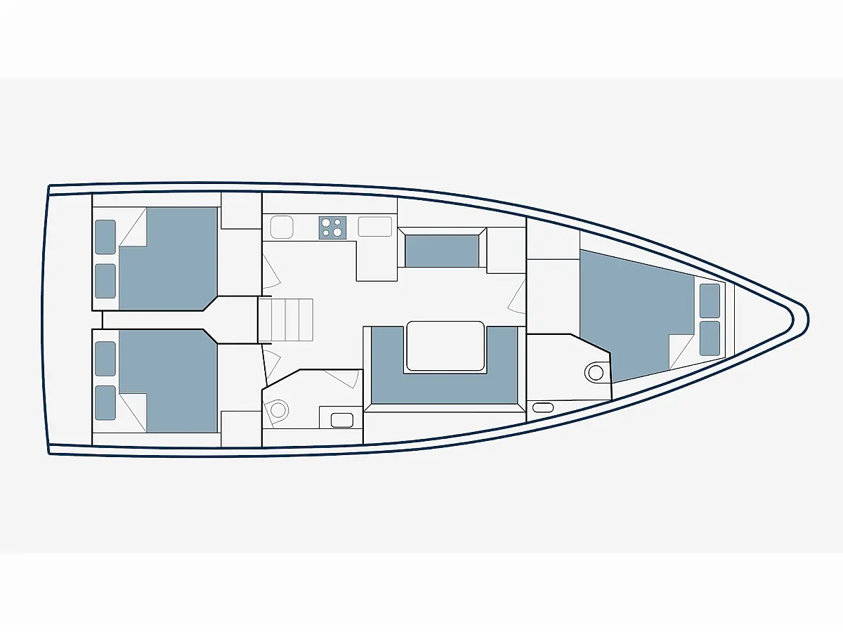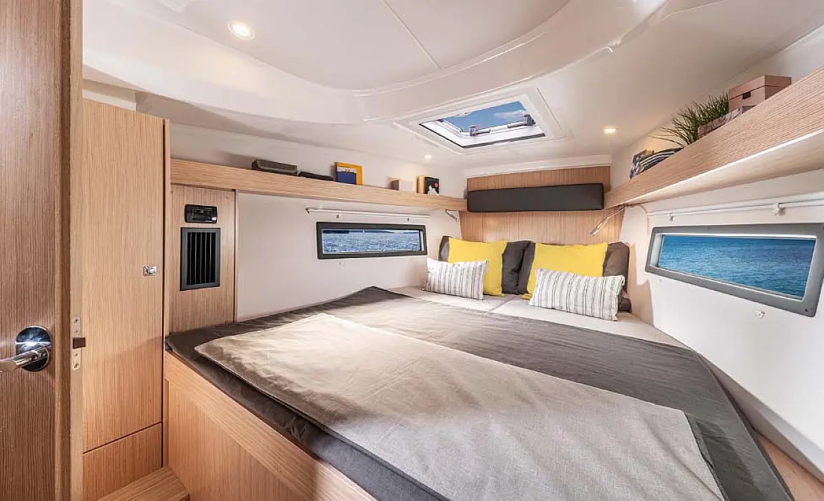 Holding tank , Refrigerator , Bimini , Swimming platform , Dinghy , Cockpit cushions , Cockpit speakers
