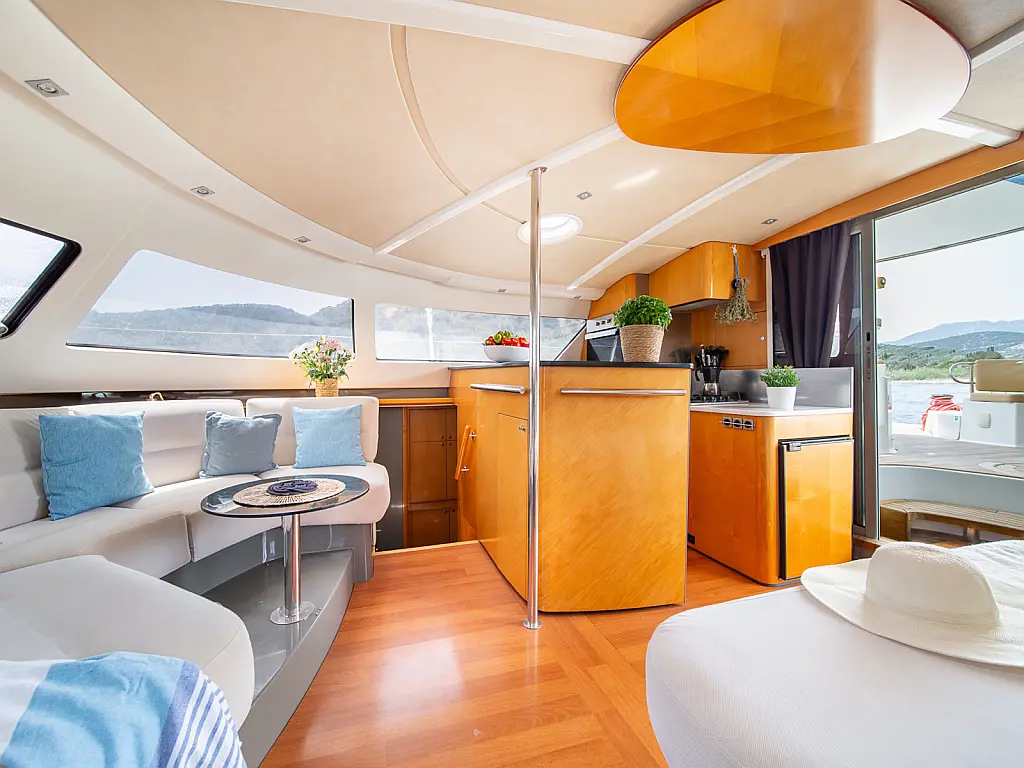 Refrigerator , Bimini , Barbecue grill in cockpit , Air condition , Generator , Inverter , Solar Panels