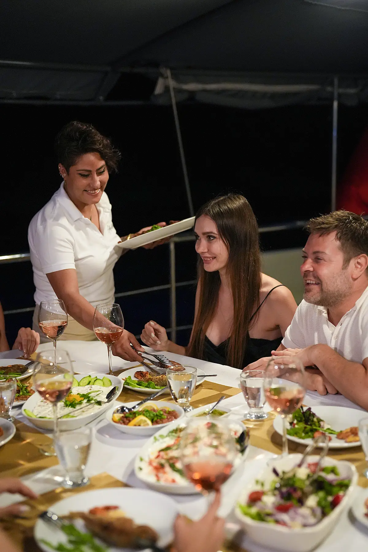 Full board PER PERSON - Drinks on board (water still, coca-cola, fanta)
