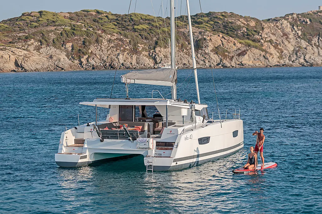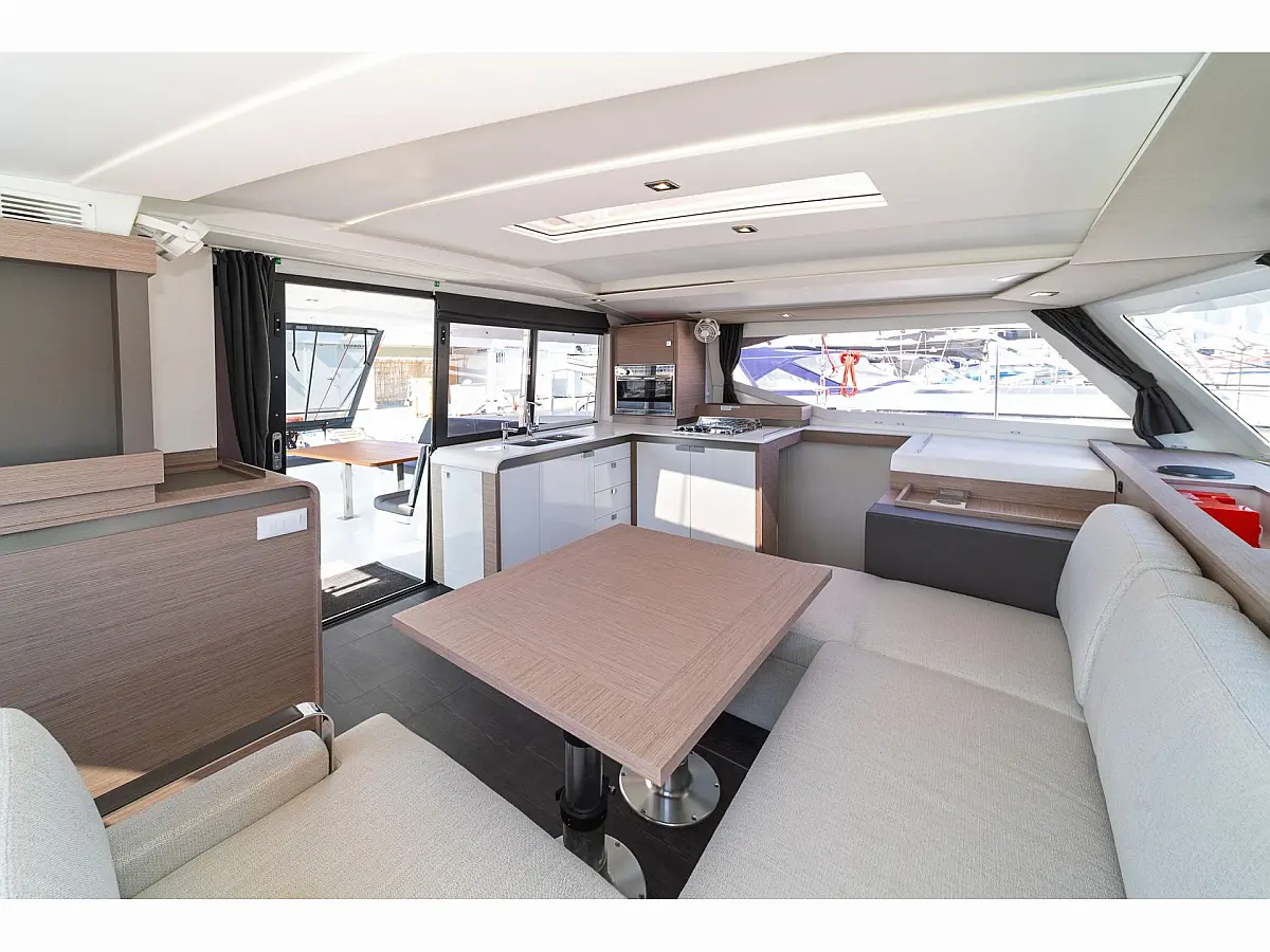 Bimini , Refrigerator , Barbecue grill in cockpit , Coffee maker , Holding tank , Electric toilet , Dinghy , Cockpit cushions , Solar Panels , Cockpit speakers