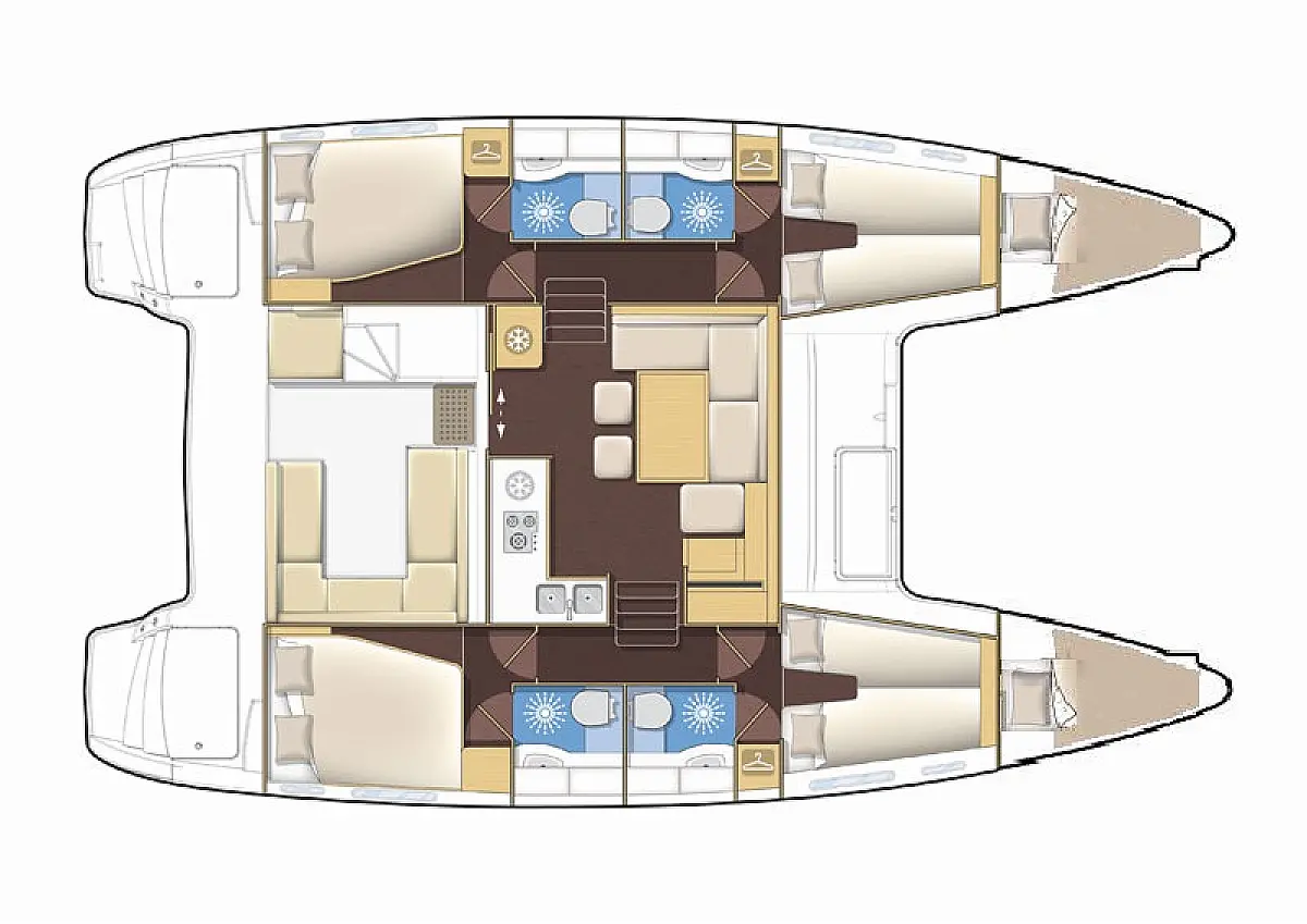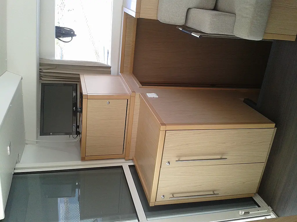 Air condition , Bimini , Electric winches , Flybridge , Heating , Cockpit speakers , Refrigerator , Solar Panels , Wi-Fi & Internet , Dinghy