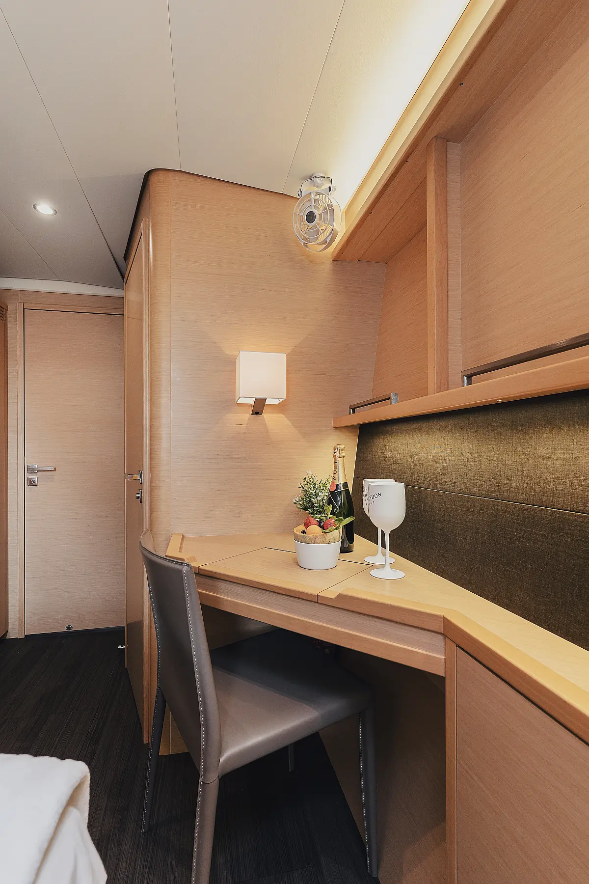 Air condition , Dinghy , Electric winches , Generator , Cockpit speakers , Refrigerator , Solar Panels , Teak deck , Water maker