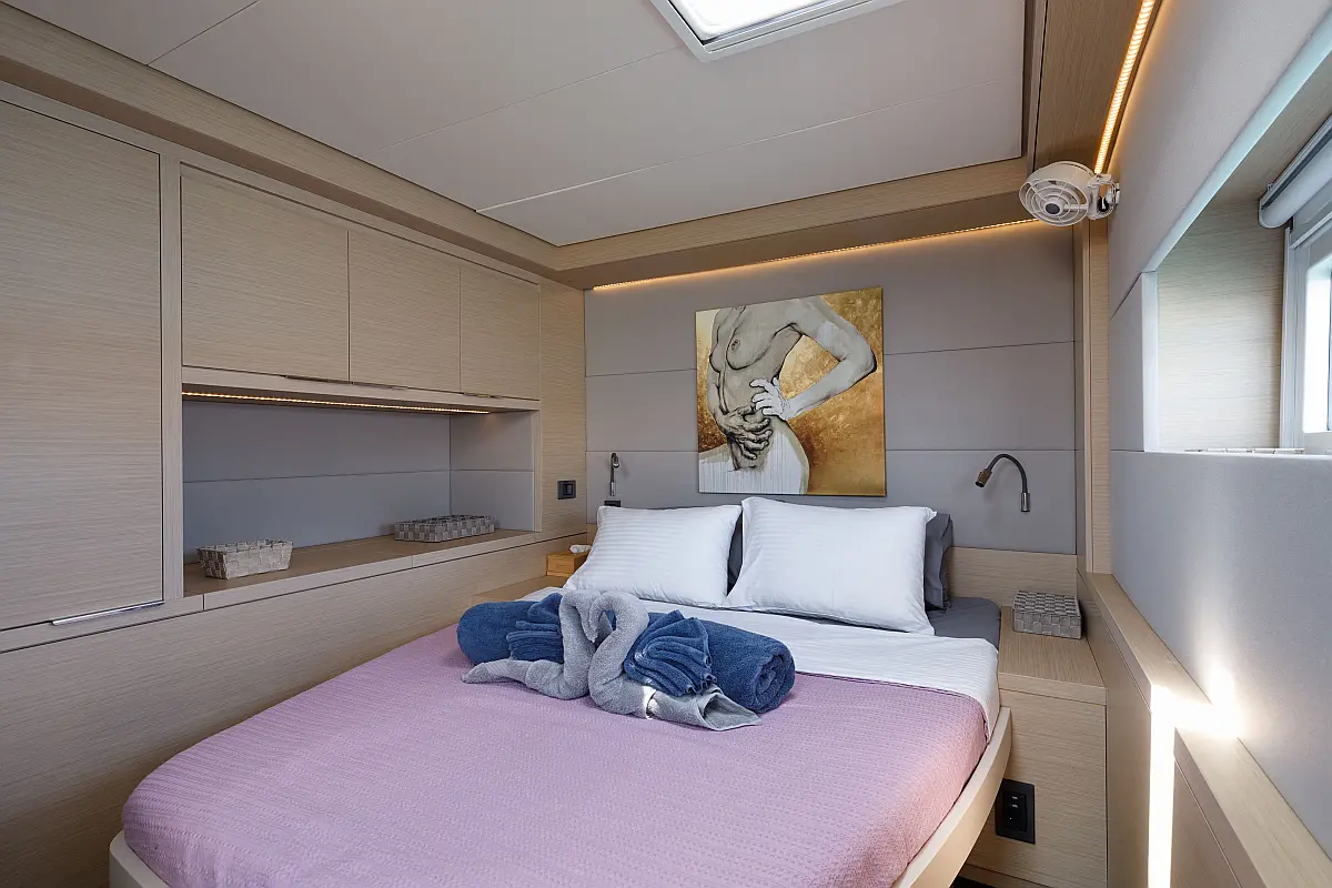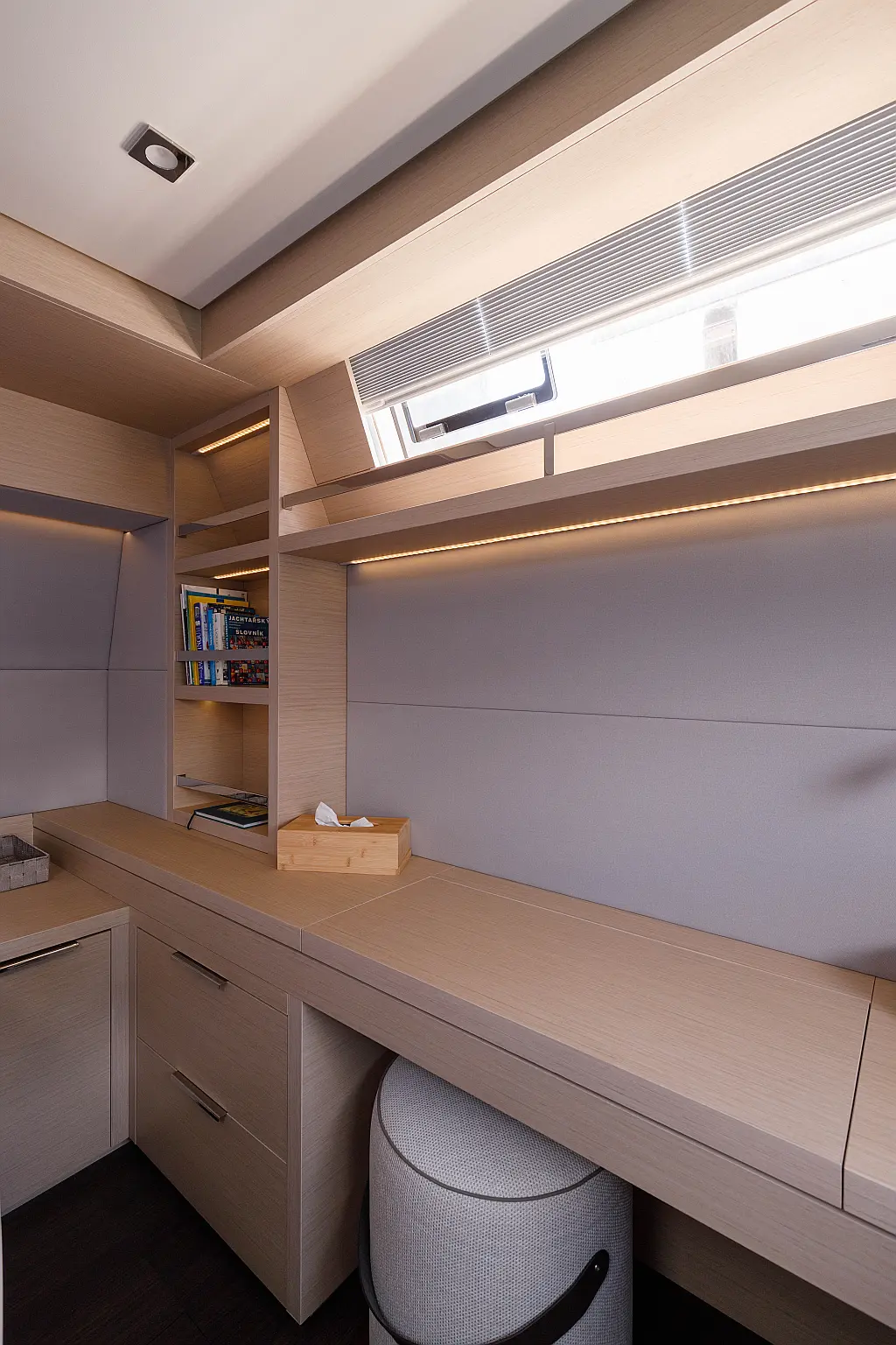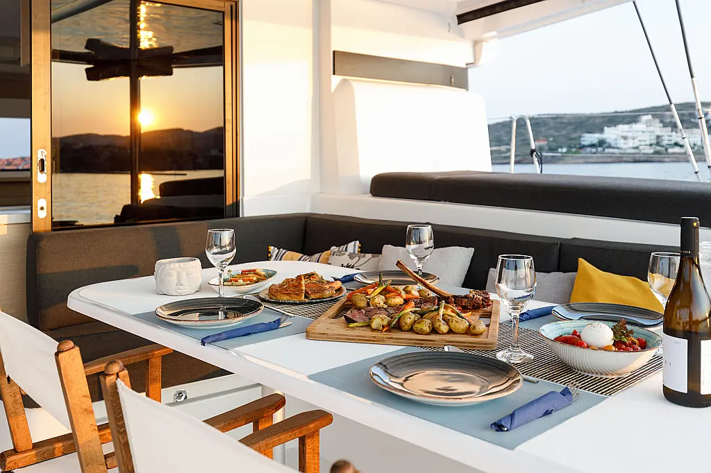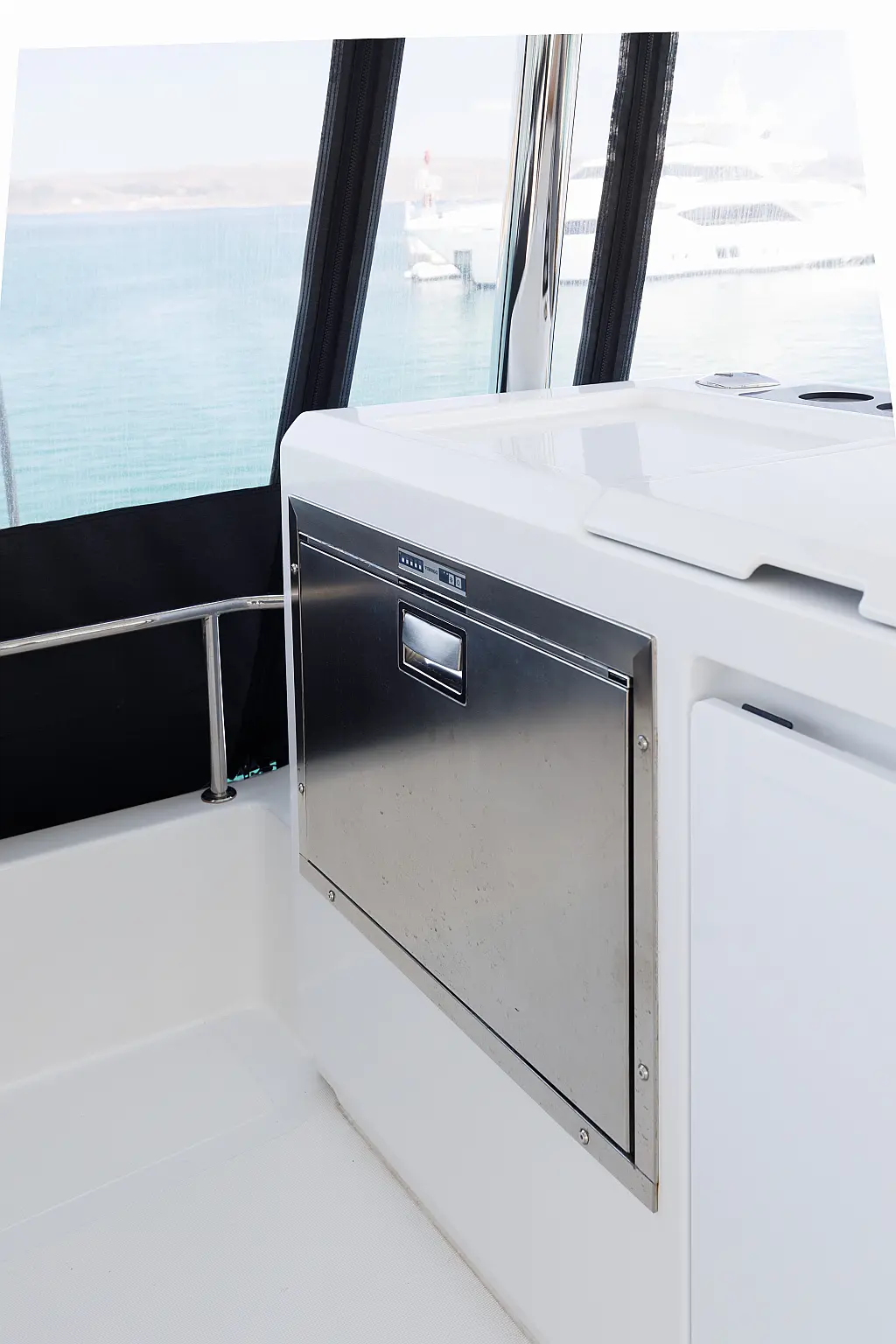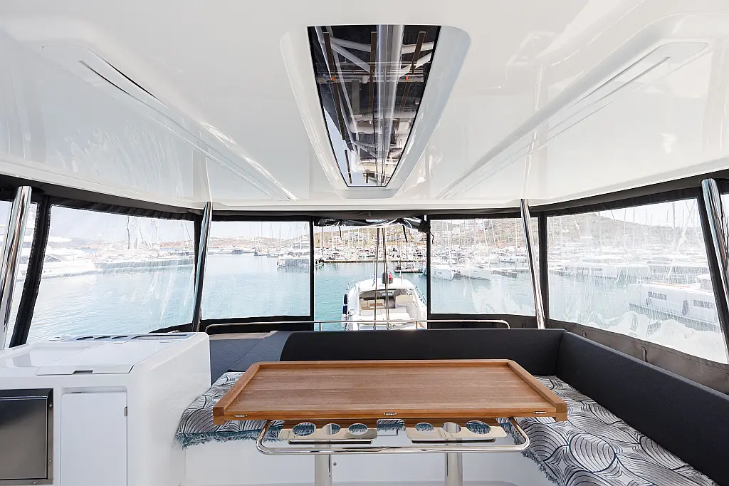 Bimini																, Holding tank																, Cockpit cushions																, Dinghy																, Sprayhood																, Solar Panels																, Water maker																, Wi-Fi & Internet																, Air condition																, Flybridge																, Electric winches