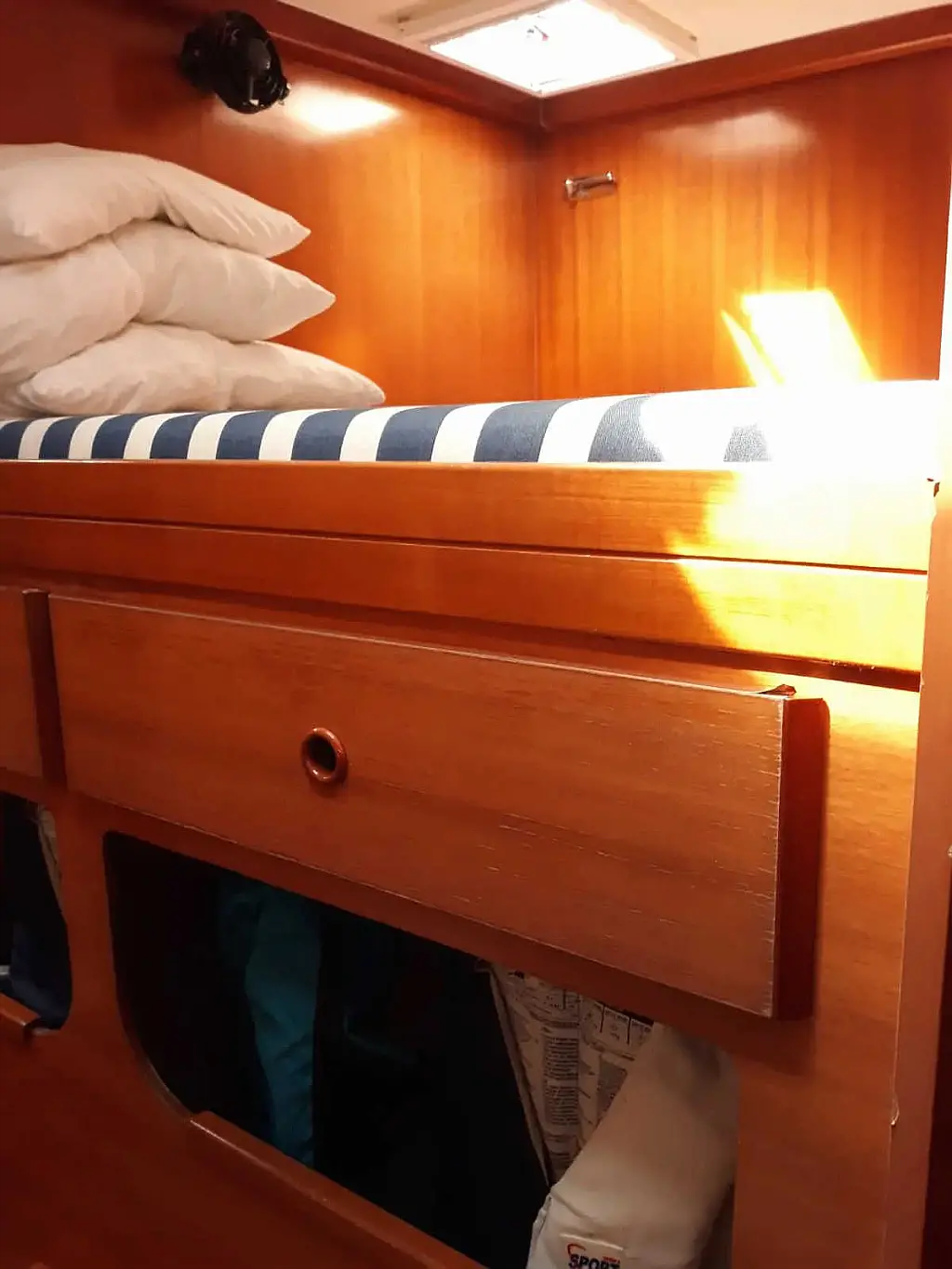 Dinghy , Air condition , Cockpit cushions , Cockpit speakers , Holding tank , Inverter , Refrigerator , Solar Panels