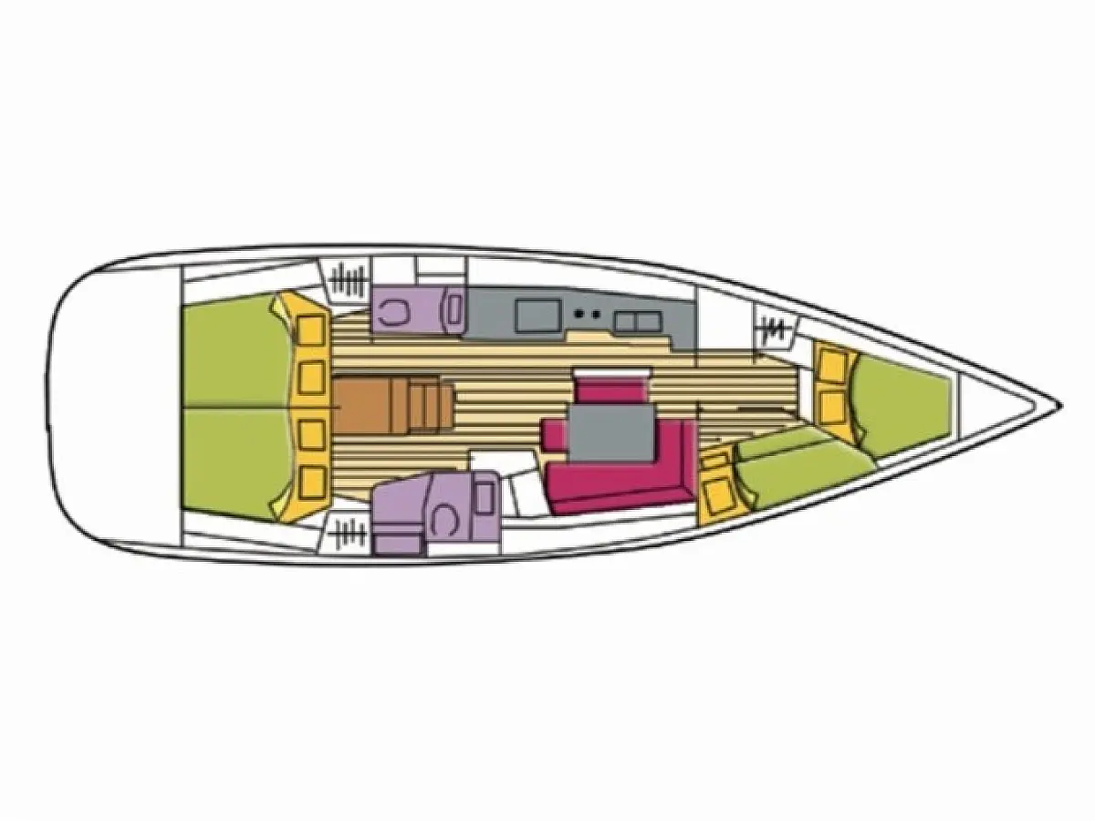 Cockpit cushions , Cockpit speakers , Dinghy , Electric toilet , Sprayhood , Teak Cockpit , Electric winches , Bimini , Heating