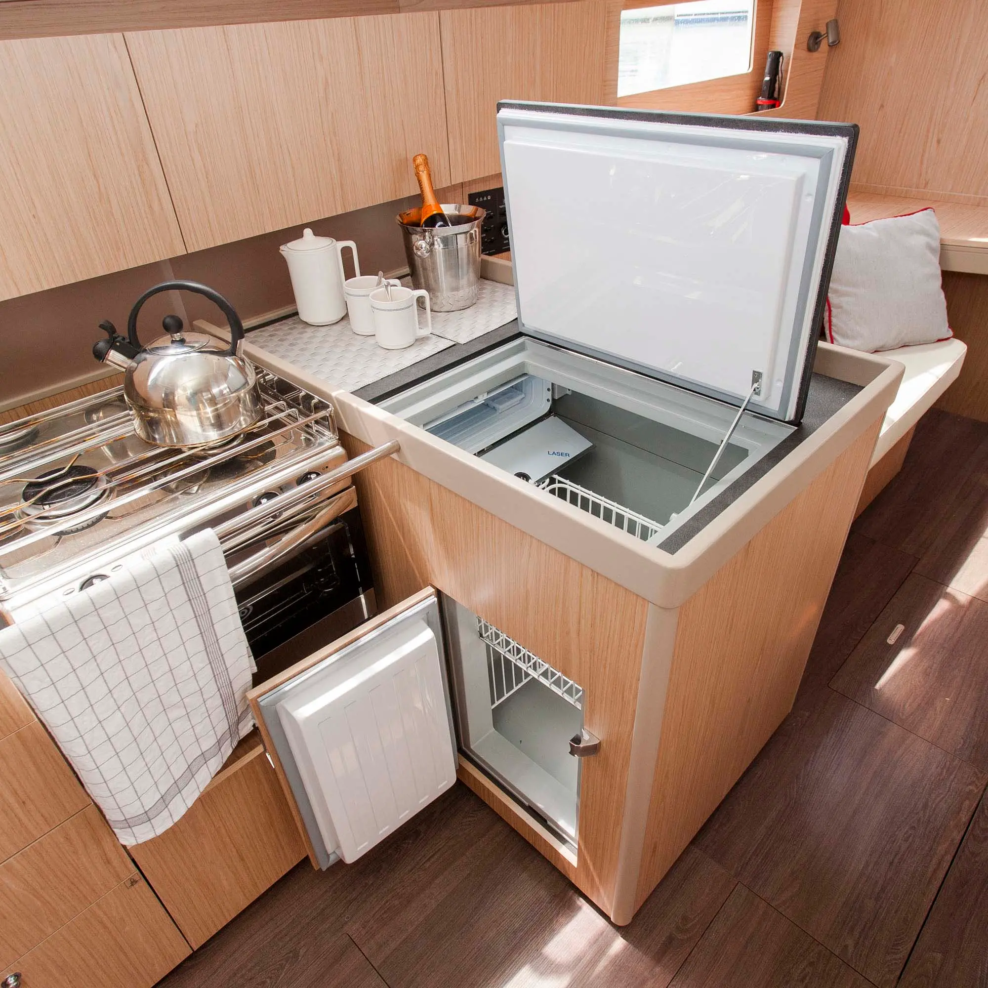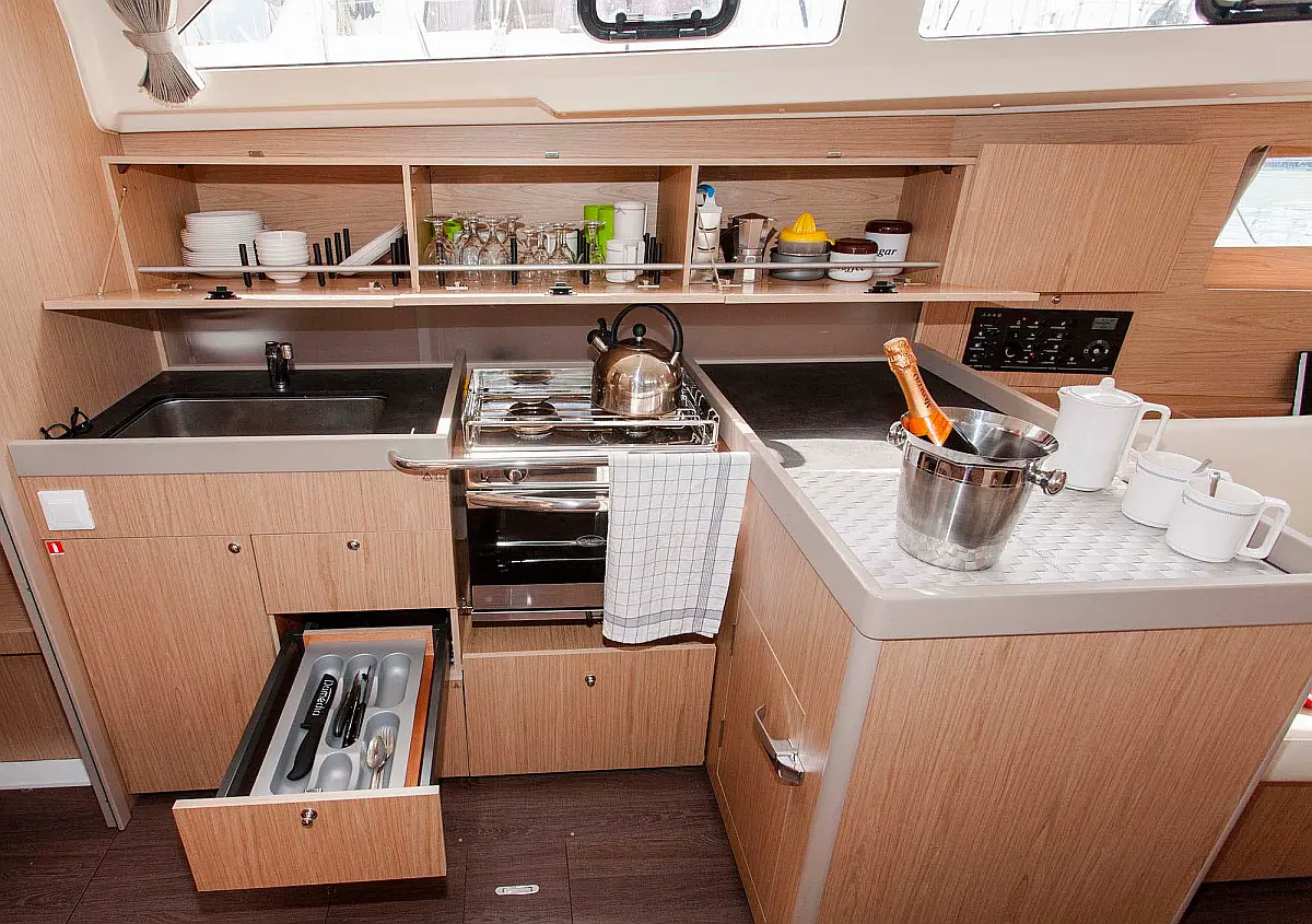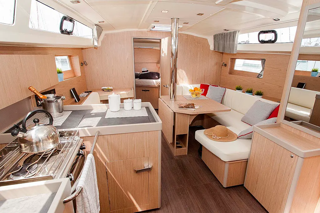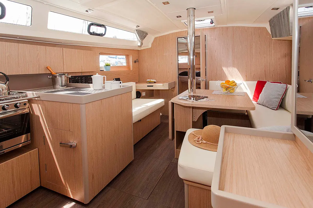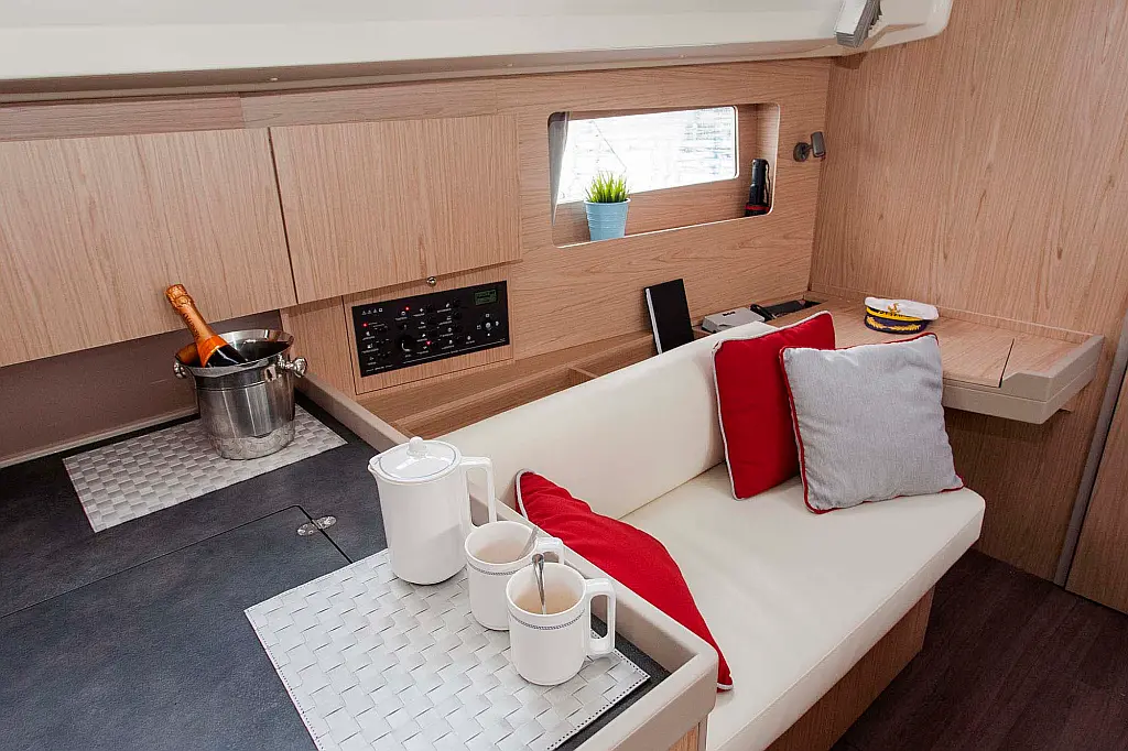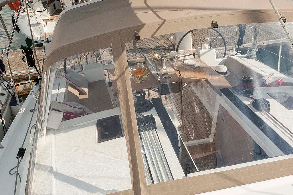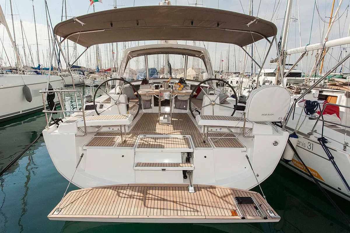 Dinghy																, Outboard engine																, Swimming platform																, Bimini																, Cockpit speakers																, Refrigerator																, Sprayhood																, Teak Cockpit