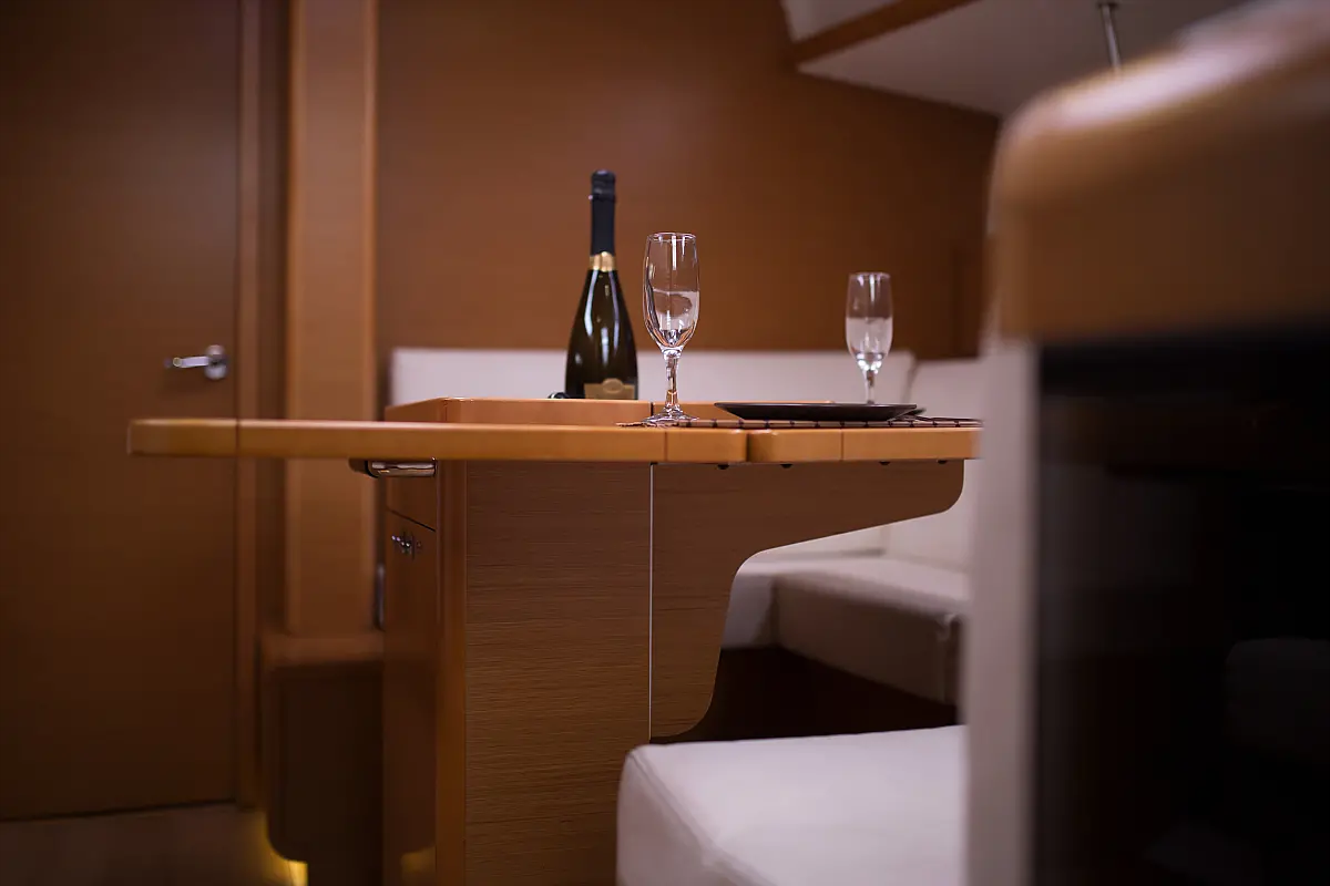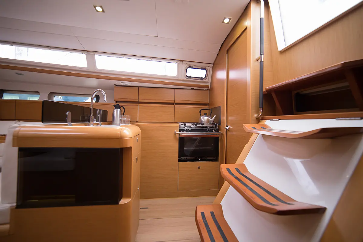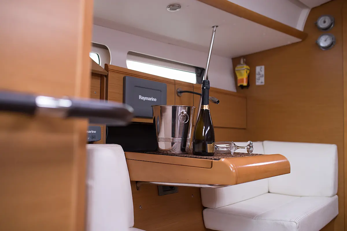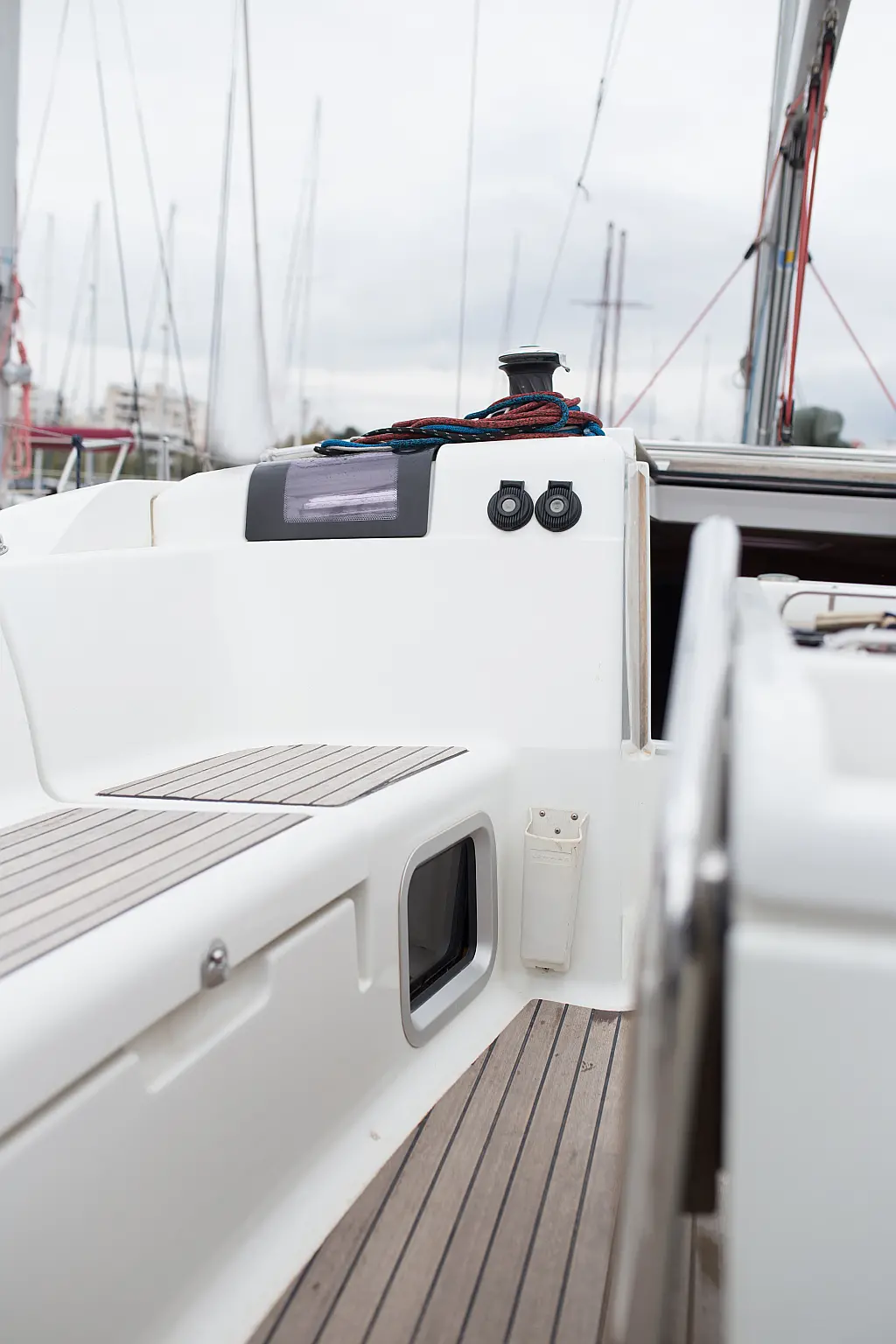 Teak deck , Electric toilet , Outboard engine , Electric winches , Refrigerator , Sprayhood