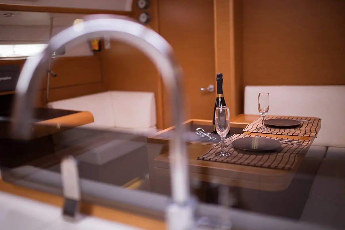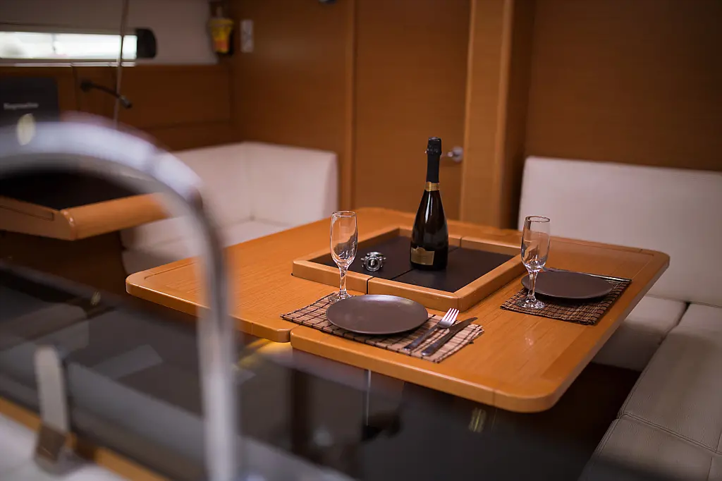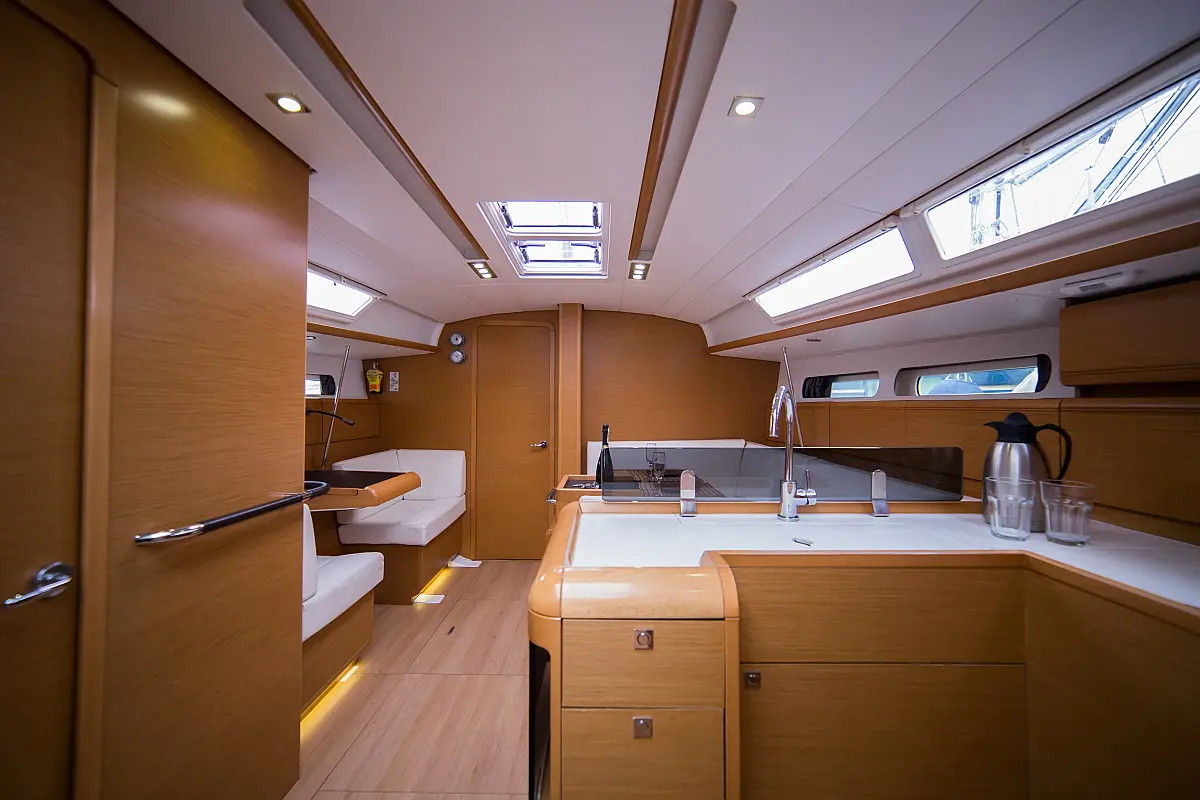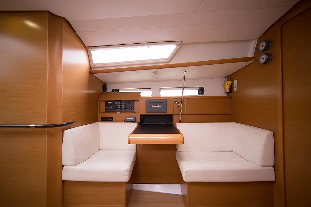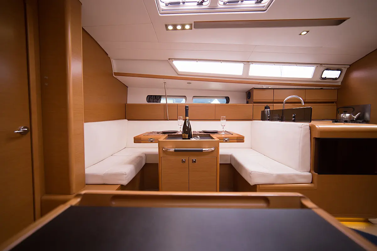 Teak deck , Electric toilet , Outboard engine , Electric winches , Refrigerator , Sprayhood