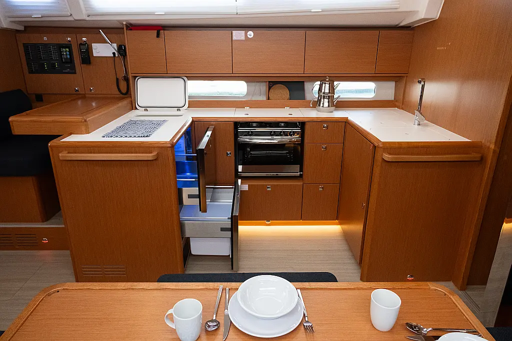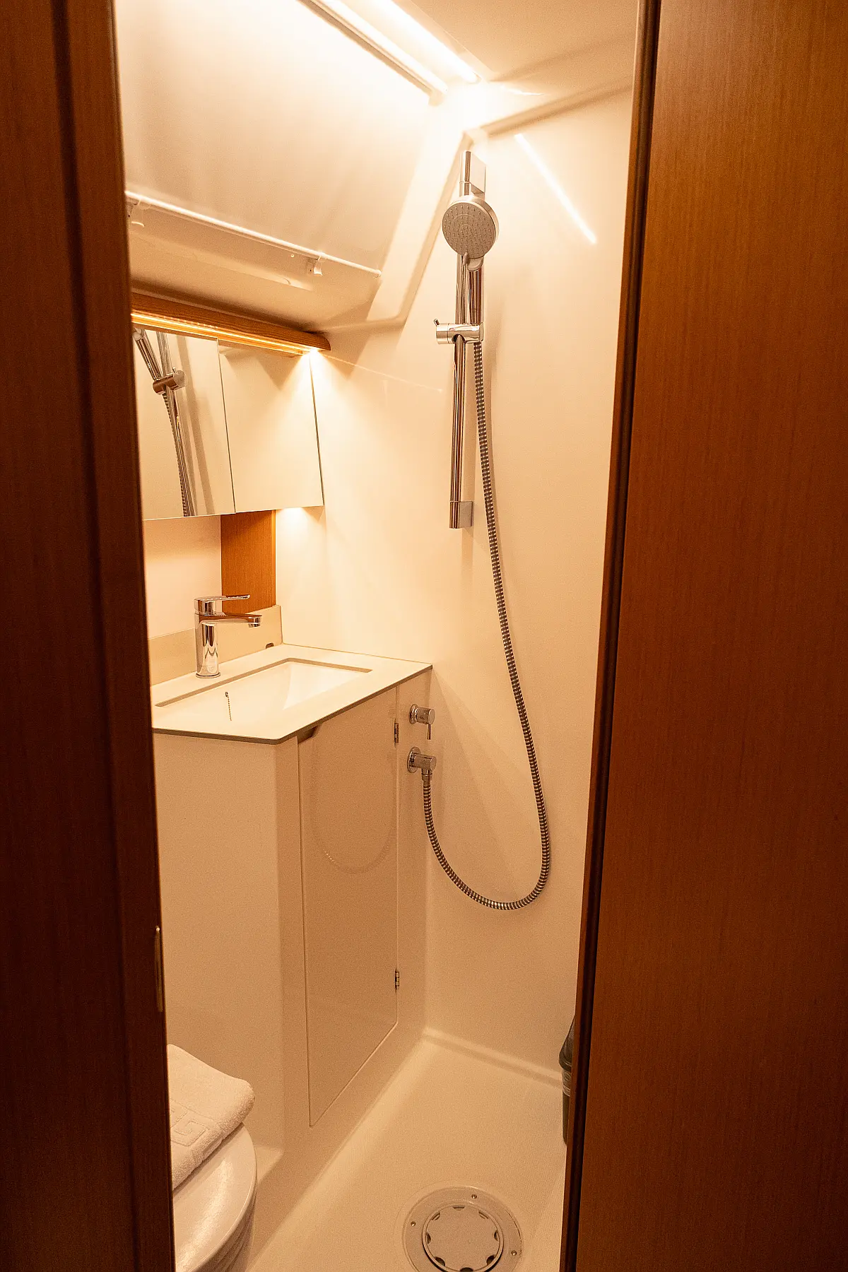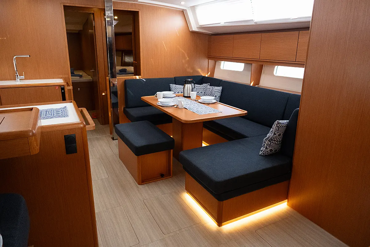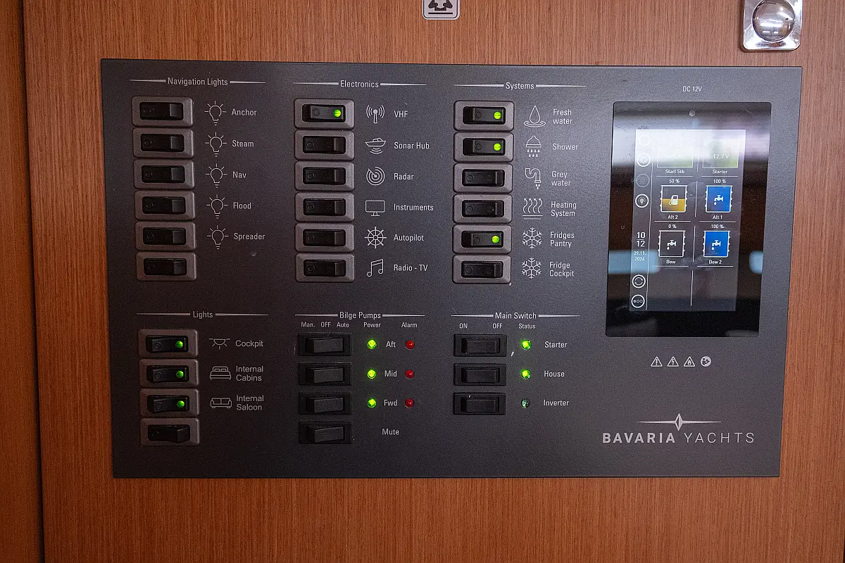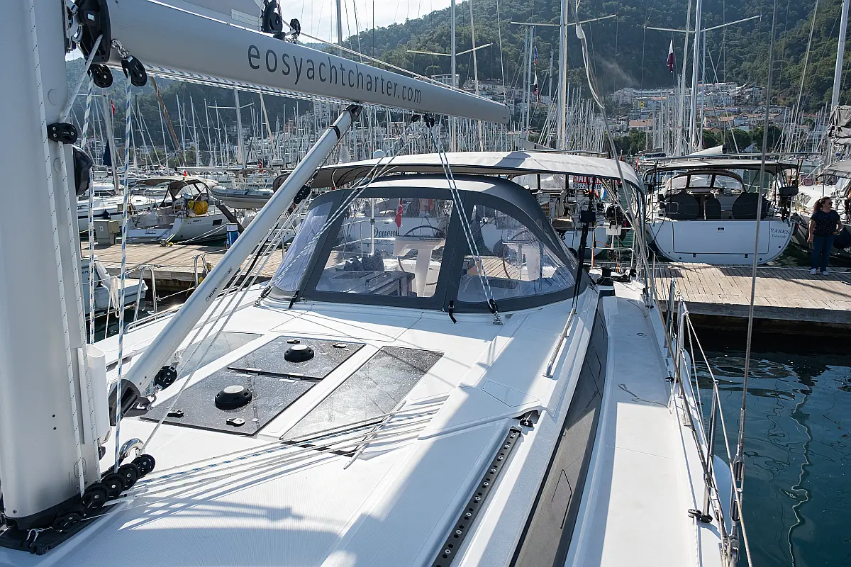 Спрейхуд , Отопление , Электрический туалет , Солнечные панели , Генератор , Кондиционер , Инвертор , Холодильник , Подвесной мотор , Динги , Бимини , Подушки в кокпите