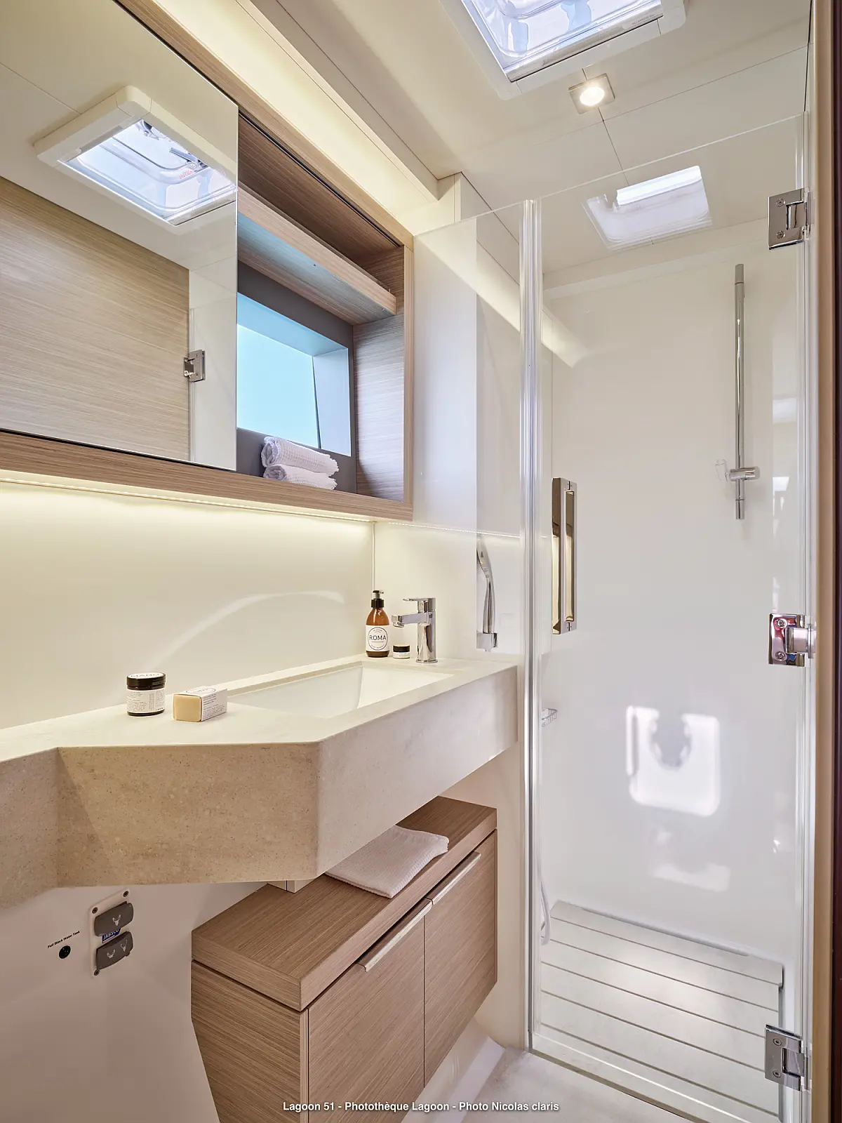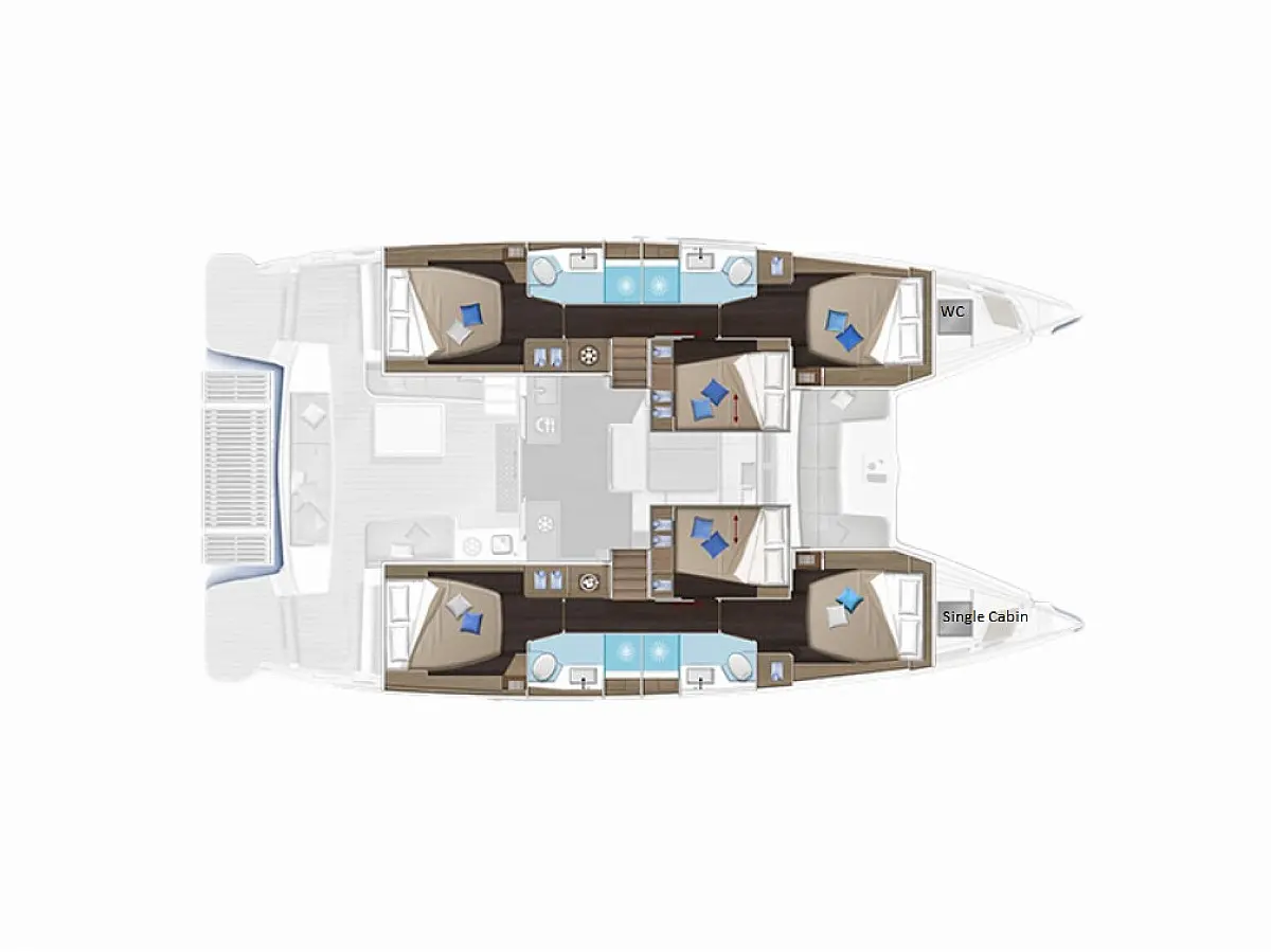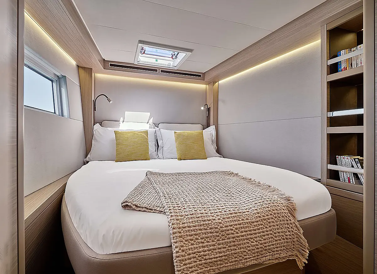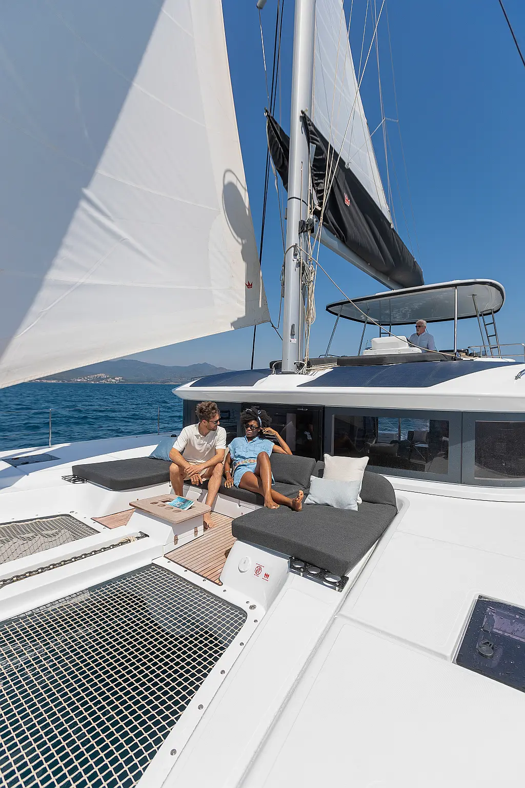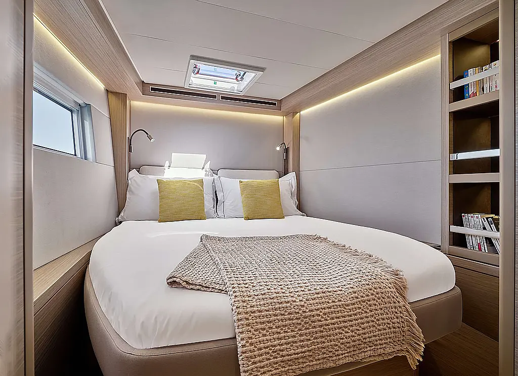 Подушки в кокпите , Спрейхуд , Бимини , Кондиционер , Генератор , Опреснитель морской воды , Wi-Fi и Интернет , Электрический туалет , Холодильник , Динамики в кокпите , Солнечные панели