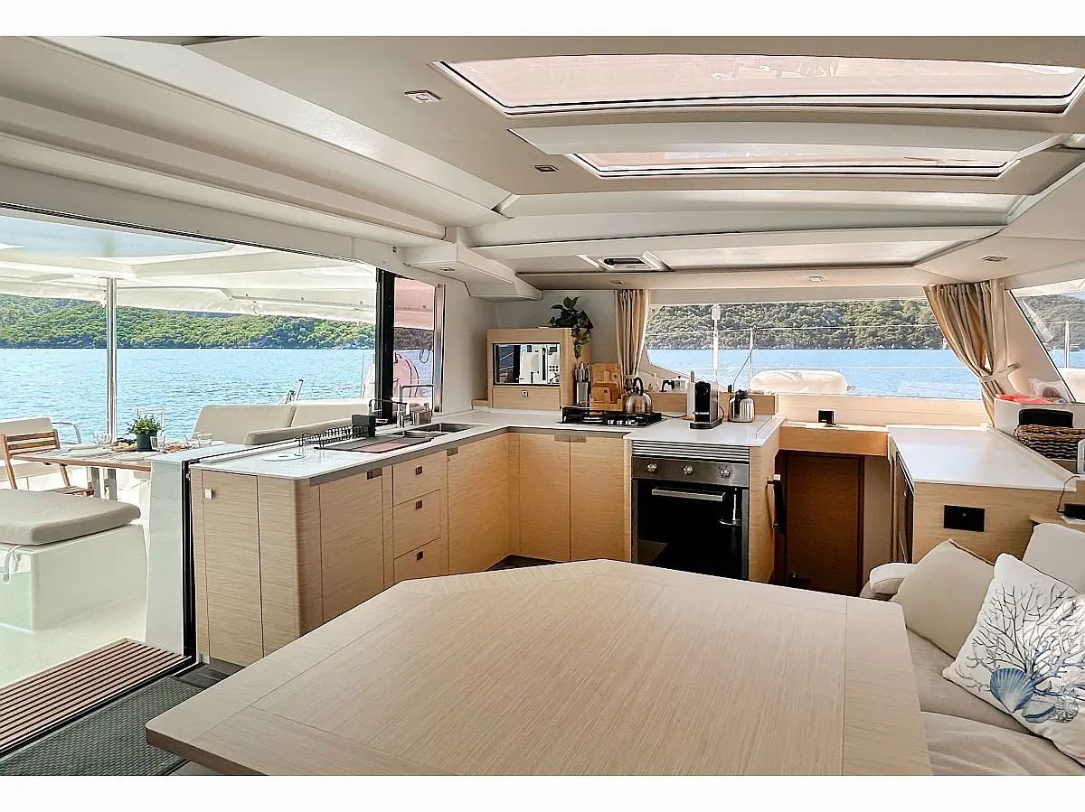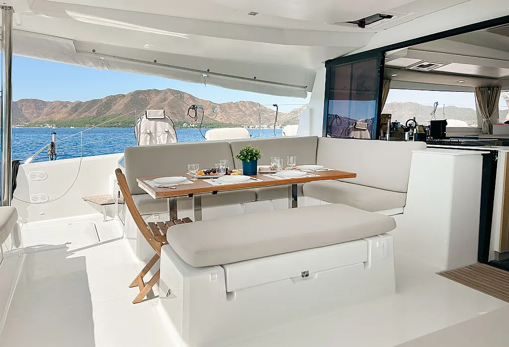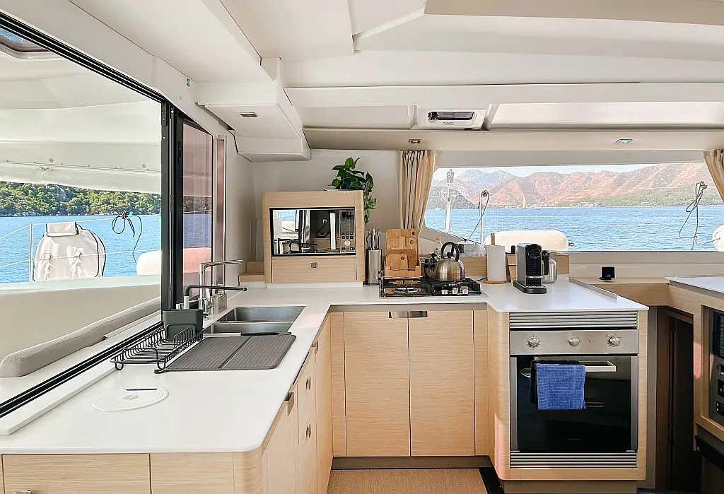 Генератор , Динги , Кофеварка , Инвертор , Кондиционер , Опреснитель морской воды , Электрические лебедки , Холодильник , Солнечные панели , Подушки в кокпите , Динамики в кокпите , Wi-Fi и Интернет , Электрический туалет , Флайбридж , Гриль в кокпите , Бимини , Ледогенератор , Подвесной мотор , Спрейхуд